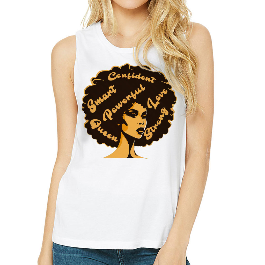 Afro Hair Women’s Muscle Tank is made from high-quality materials. The soft fabric fits perfectly to the body and suits any type of figure. Our products will make your everyday comfortable, as well as add charm to your image and emphasize your style.