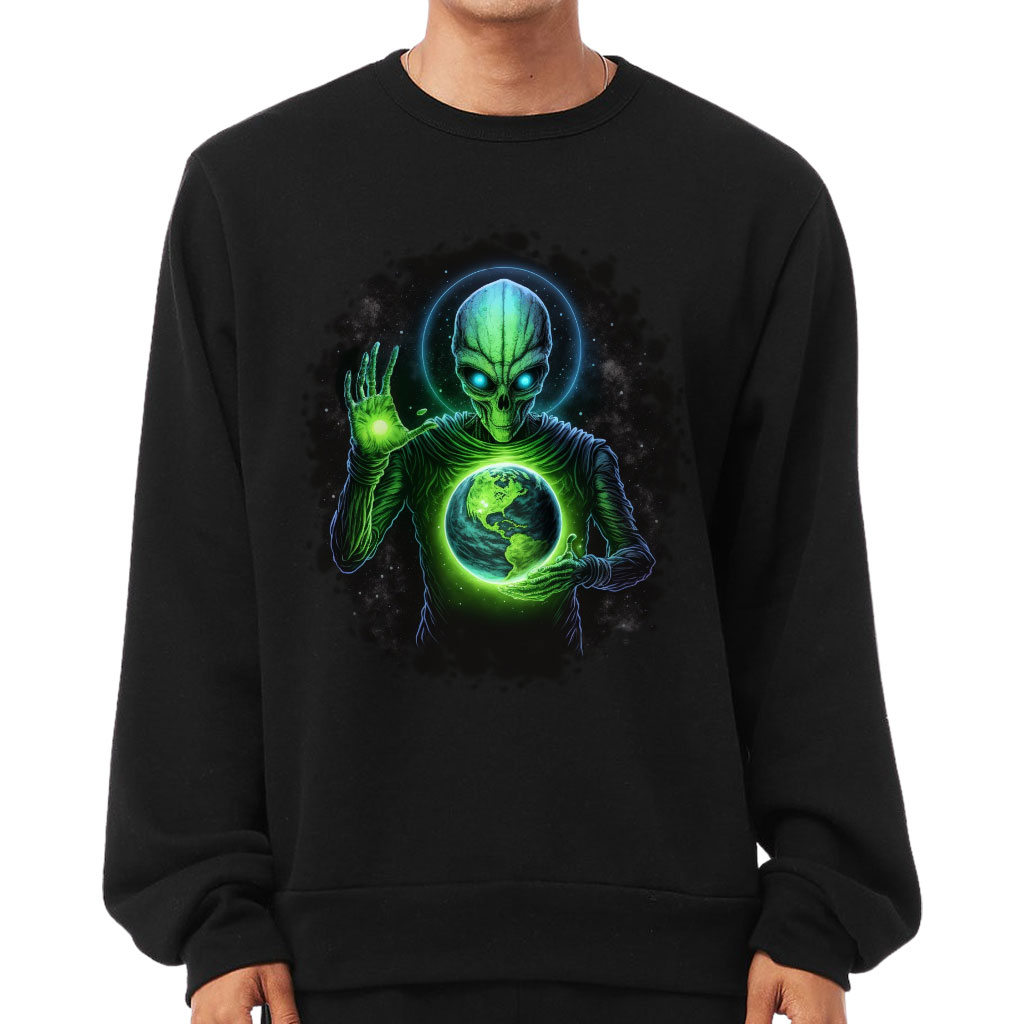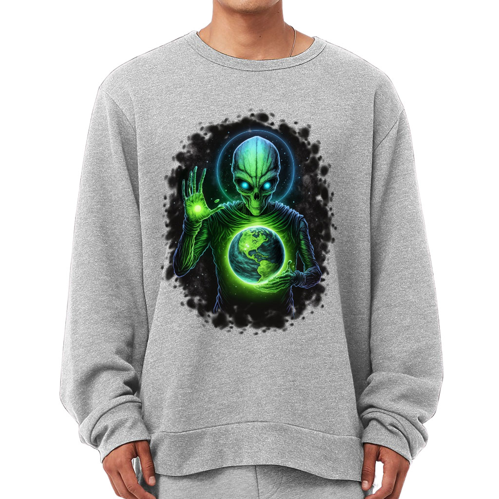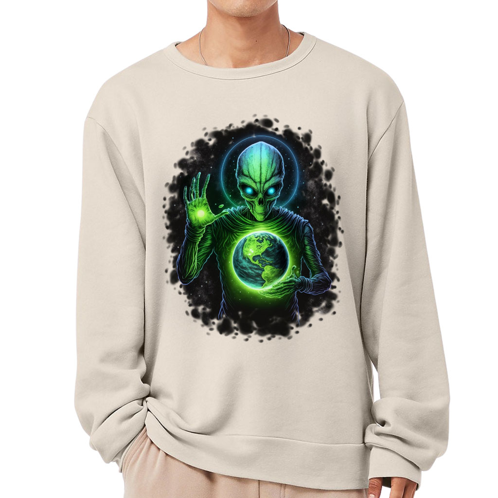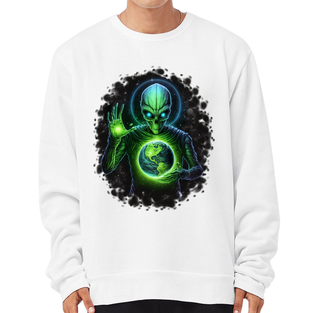 Alien Design Sponge Fleece Sweatshirt – Planet Classic Sweatshirt – Graphic Sweatshirt