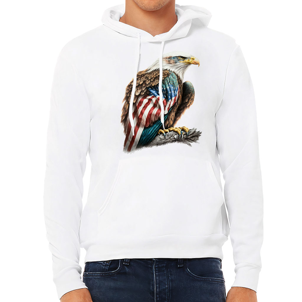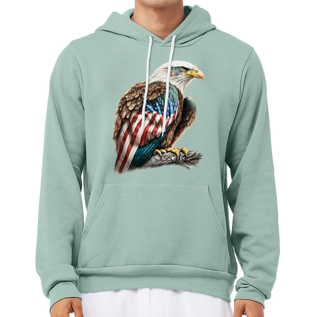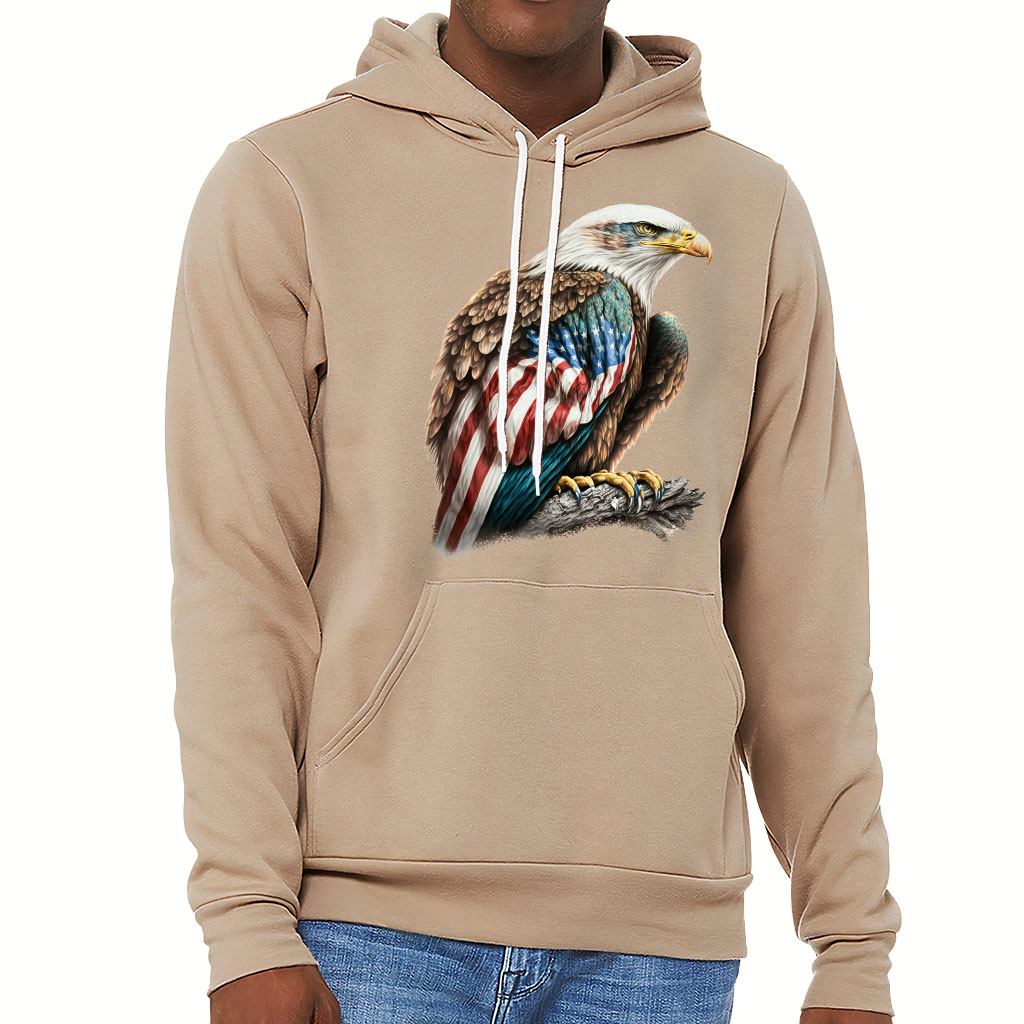 American Flag Bald Eagle Sponge Fleece Hoodie – Patriotic Hoodie – Printed Hooded Sweatshirt