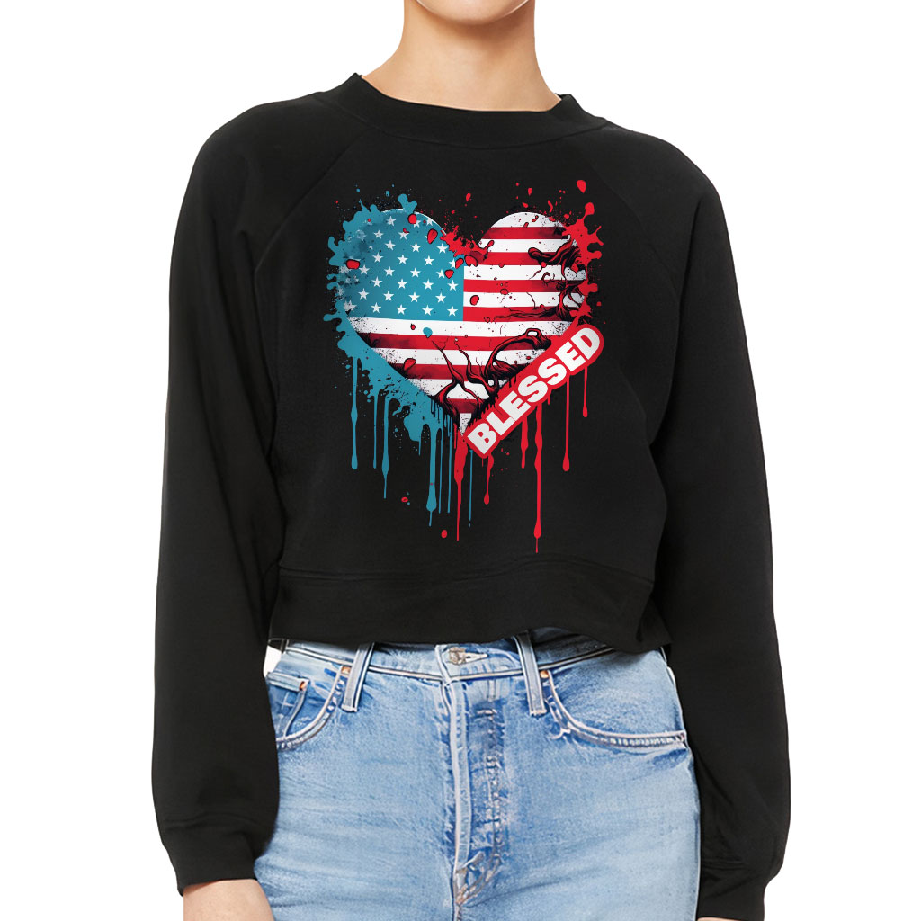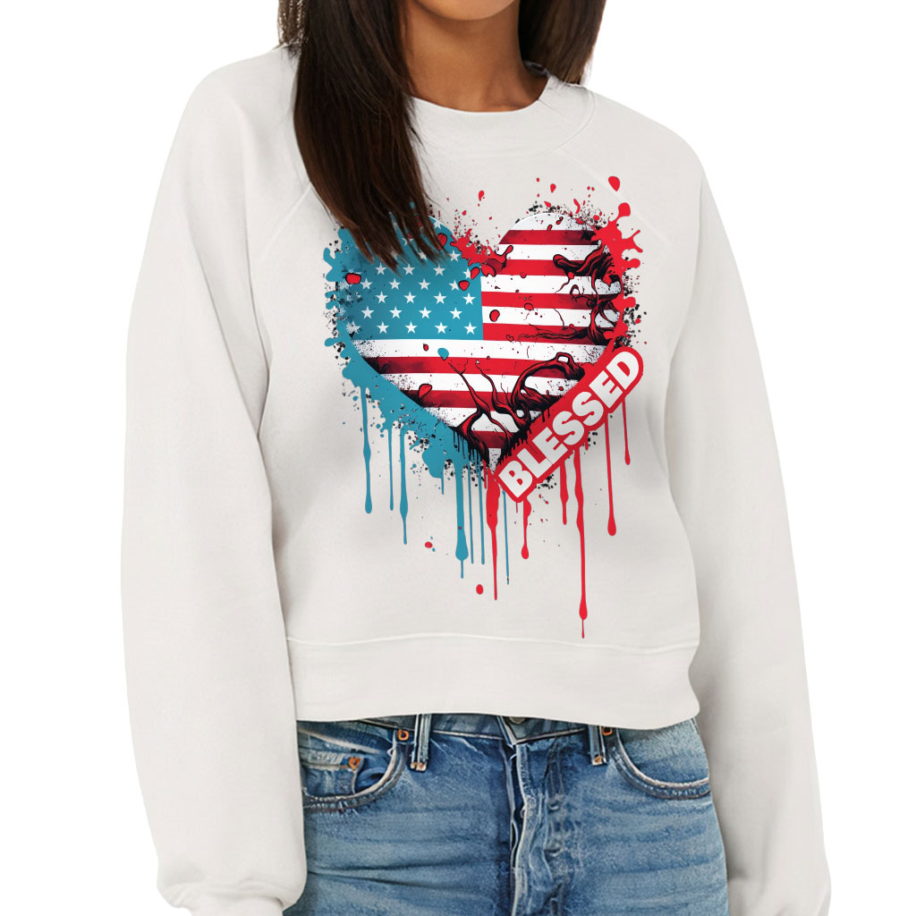American Flag Raglan Pullover – Blessed Women’s Sweatshirt – Heart Pullover