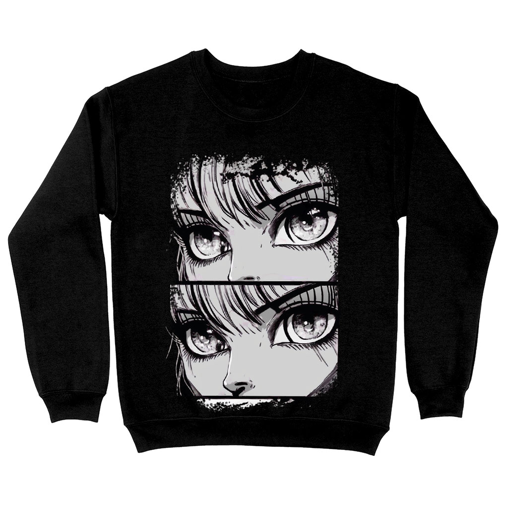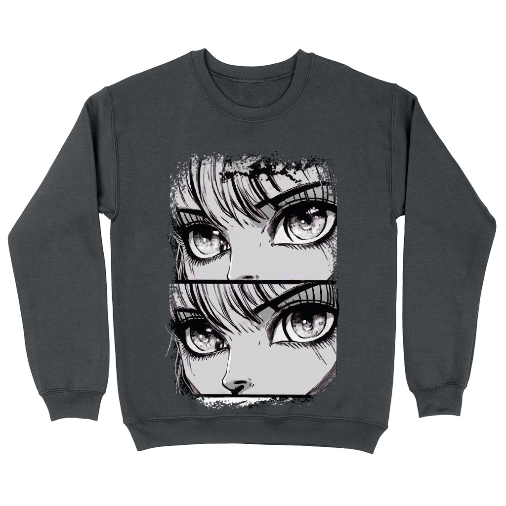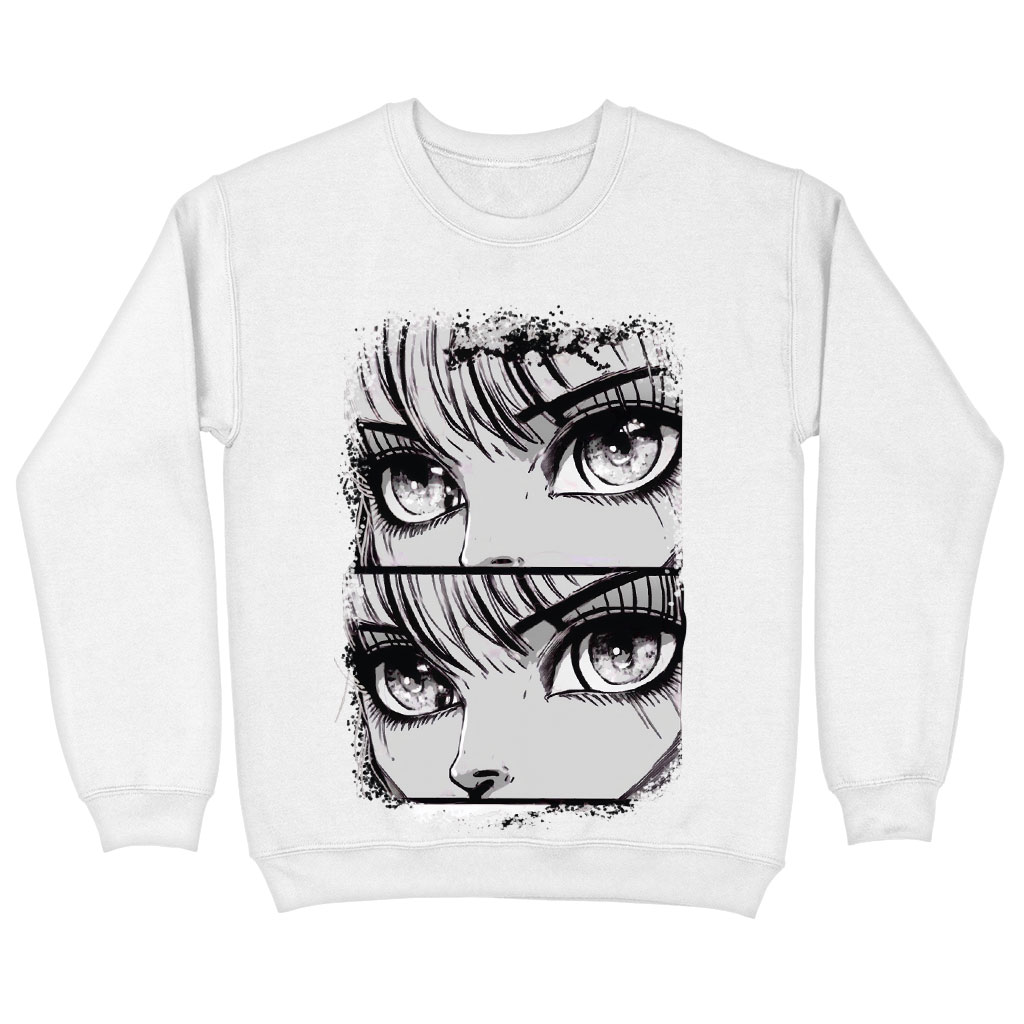 Anime Eyes Sweatshirt is made from a 50% U.S. Cotton/50% Polyester blend, this warm