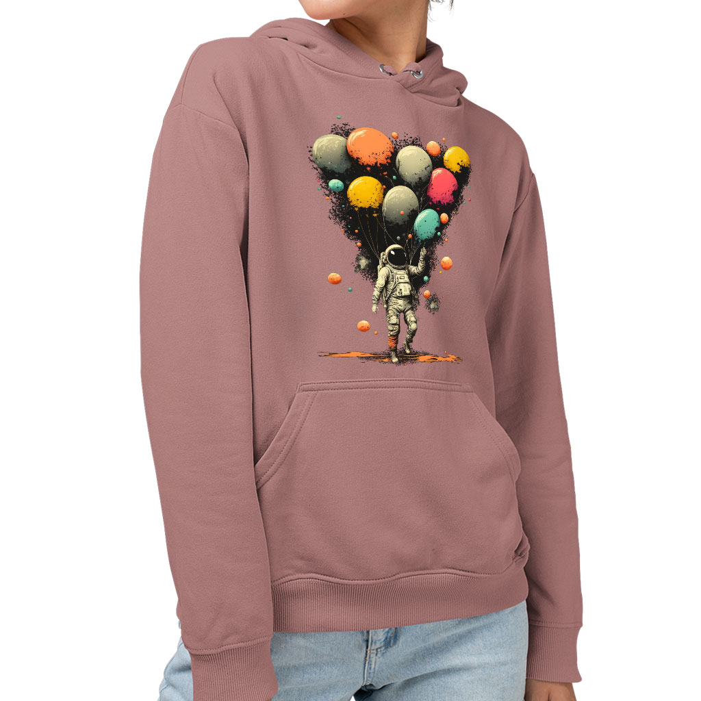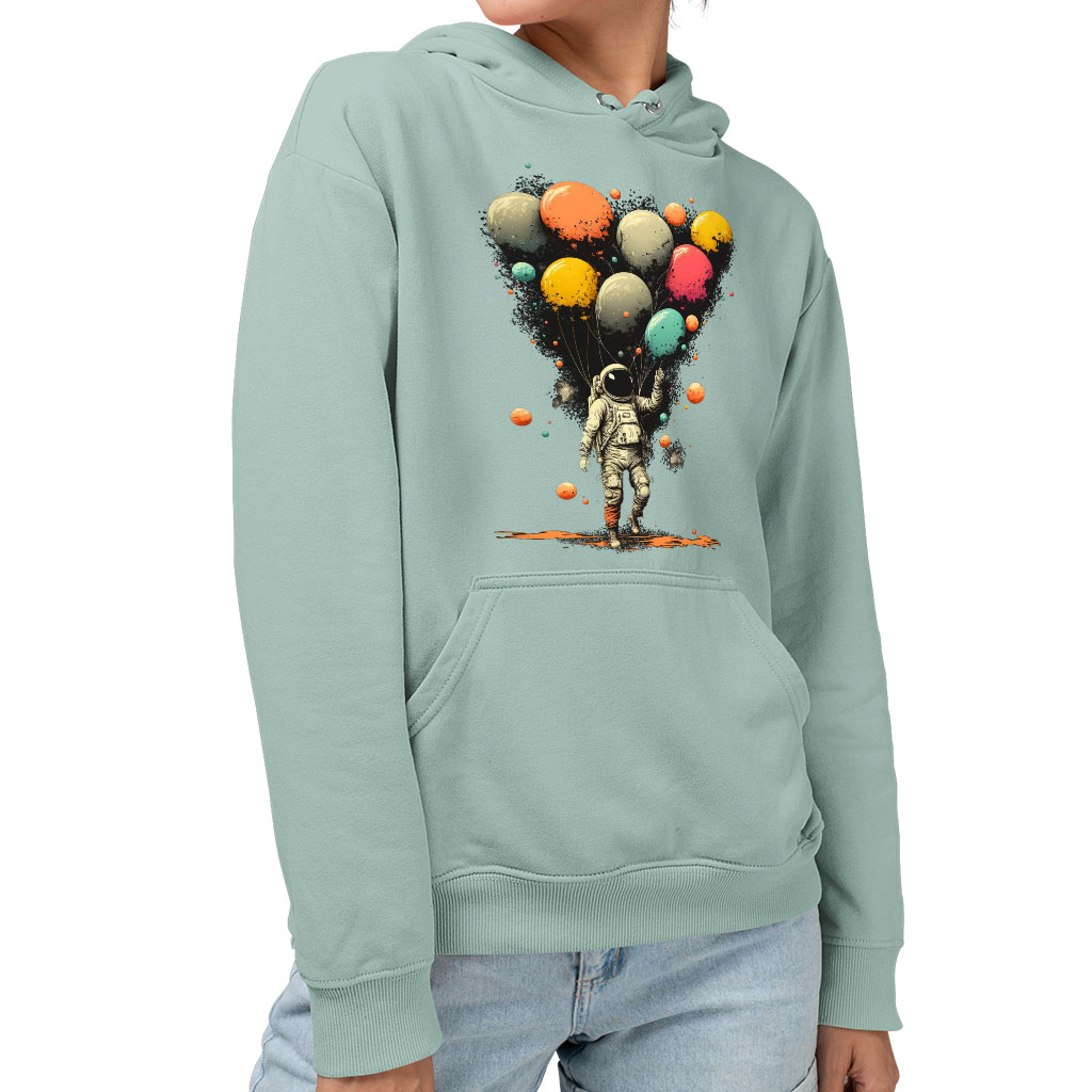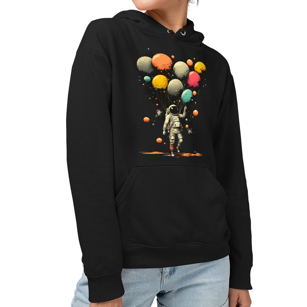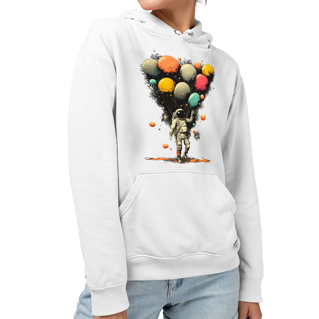 Astronaut With Balloons Sponge Fleece Hoodie – Cool Design Hoodie – Themed Hooded Sweatshirt