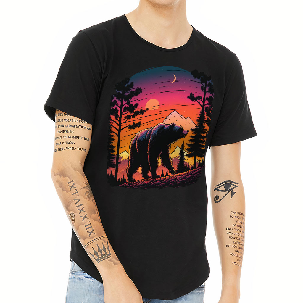 Bear Graphic Curved Hem T-Shirt is no ordinary piece of clothing. Its 3/8 neck binding, subtle