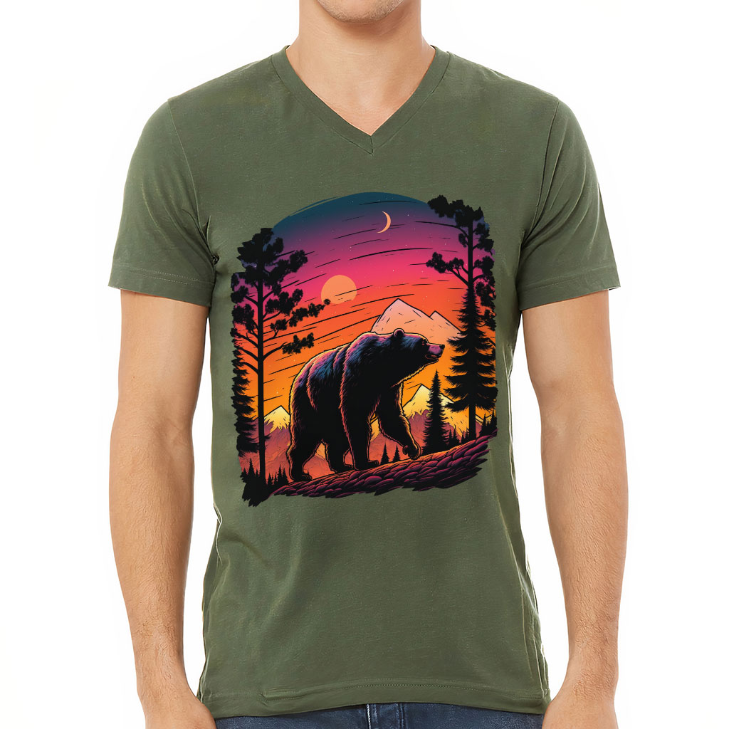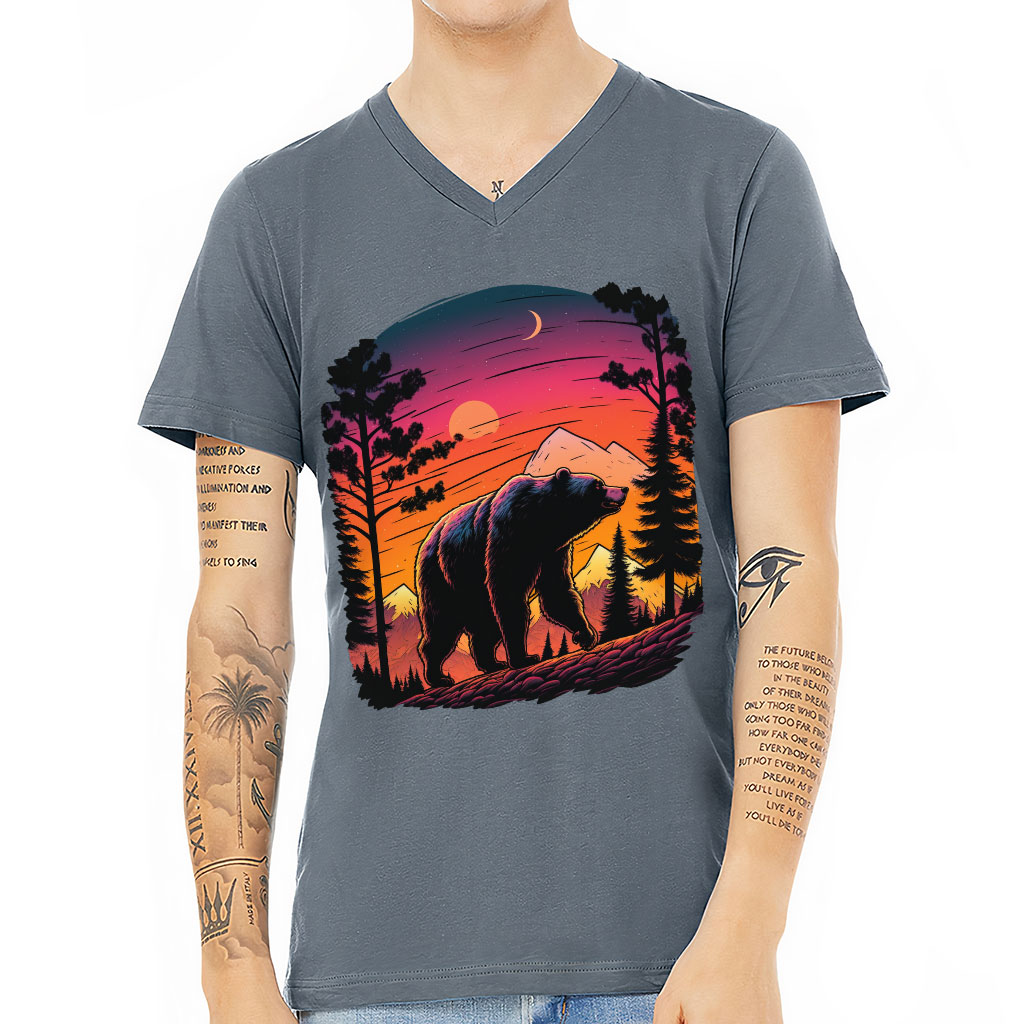 Bear Graphic V-Neck T-Shirt is proudly made with 7x less water than average manufacturers, in recycle-friendly facilities that also guarantee zero sweatshop conditions.