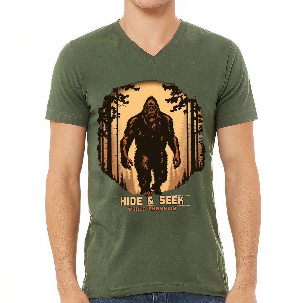 Bigfoot Hide and Seek Champion V-Neck T-Shirt