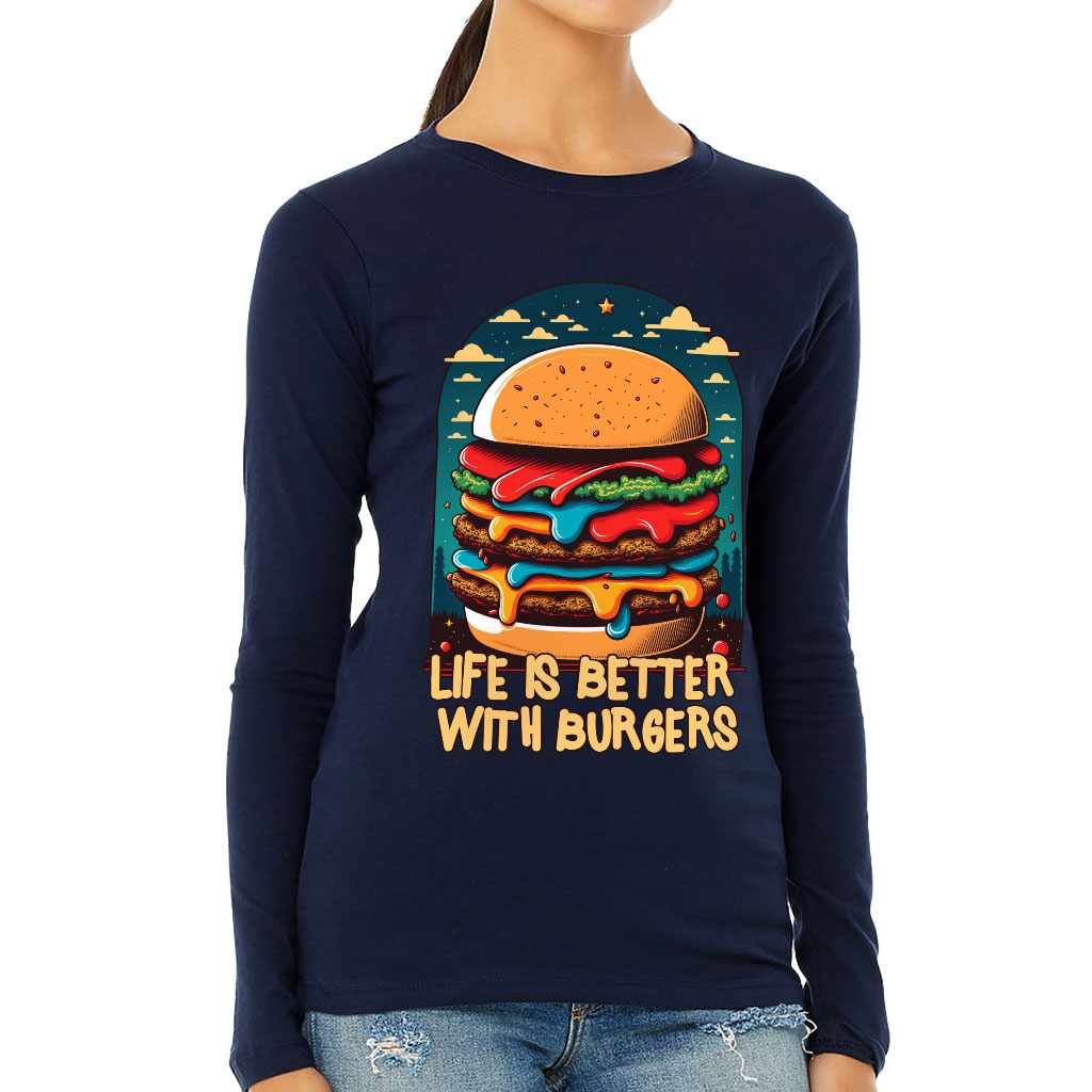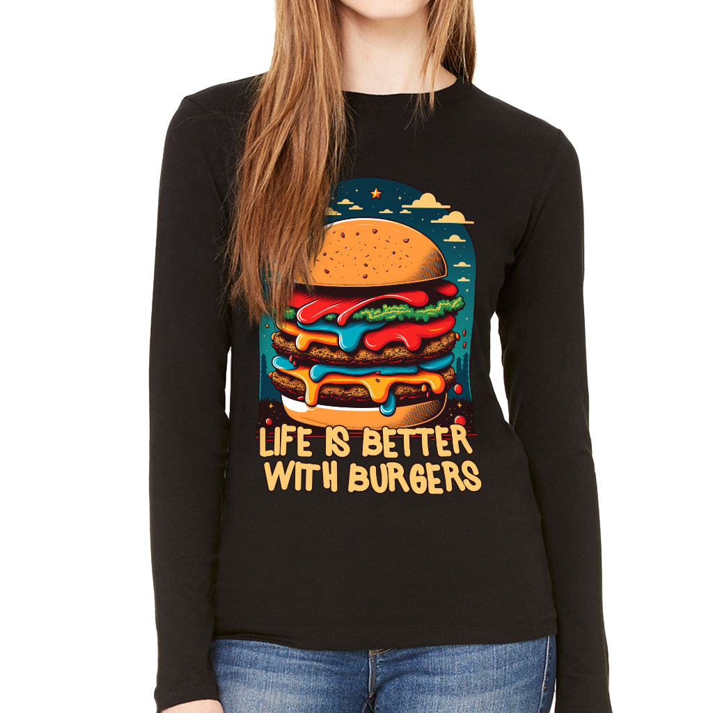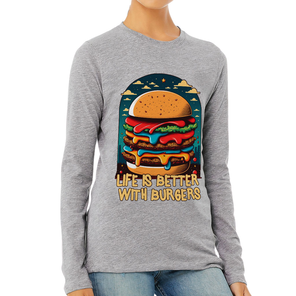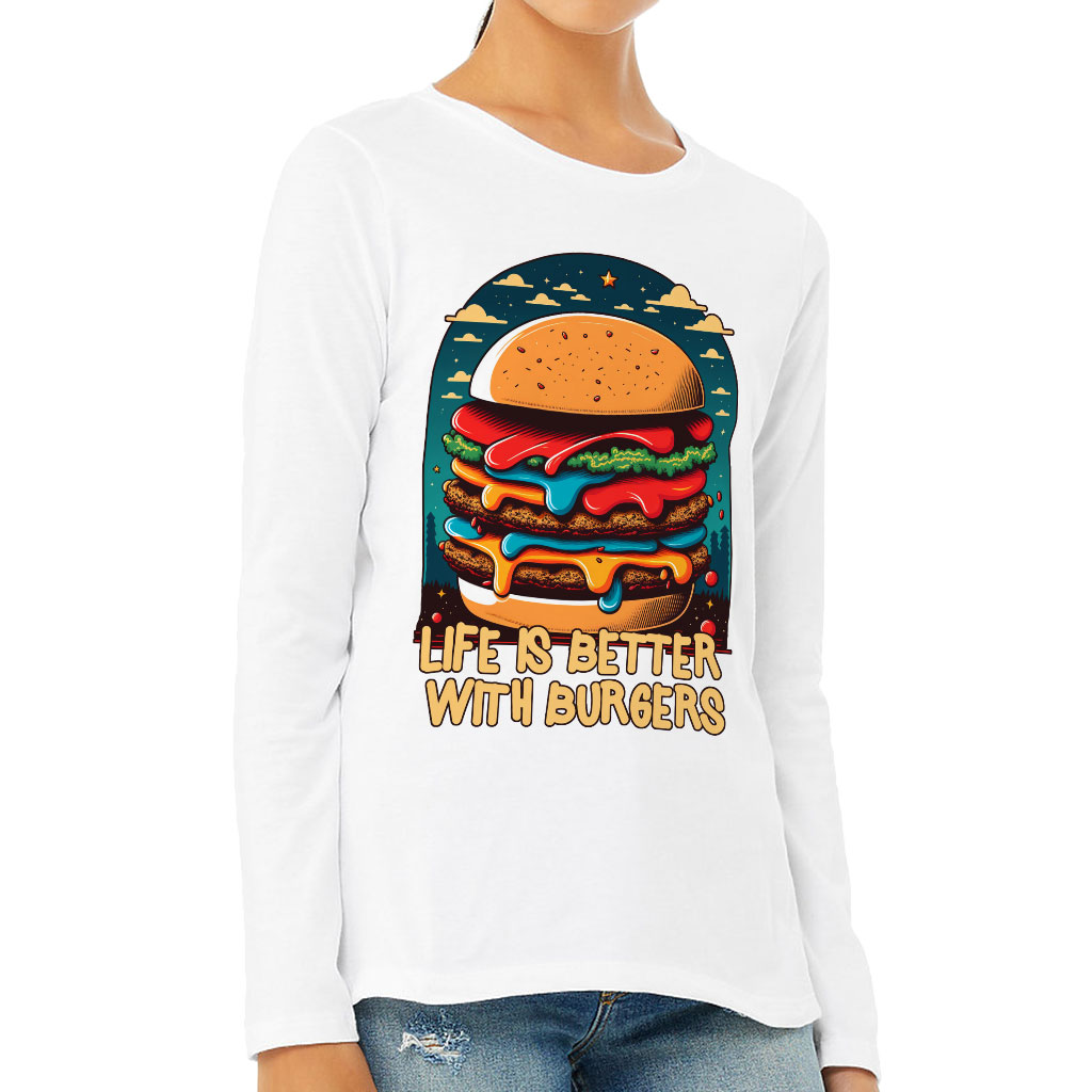Burger Print Women’s Long Sleeve T-Shirt
