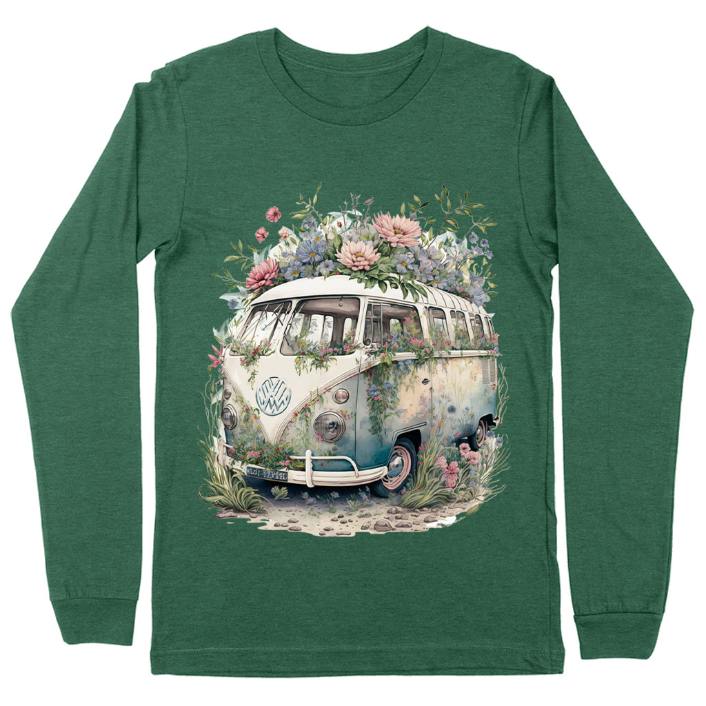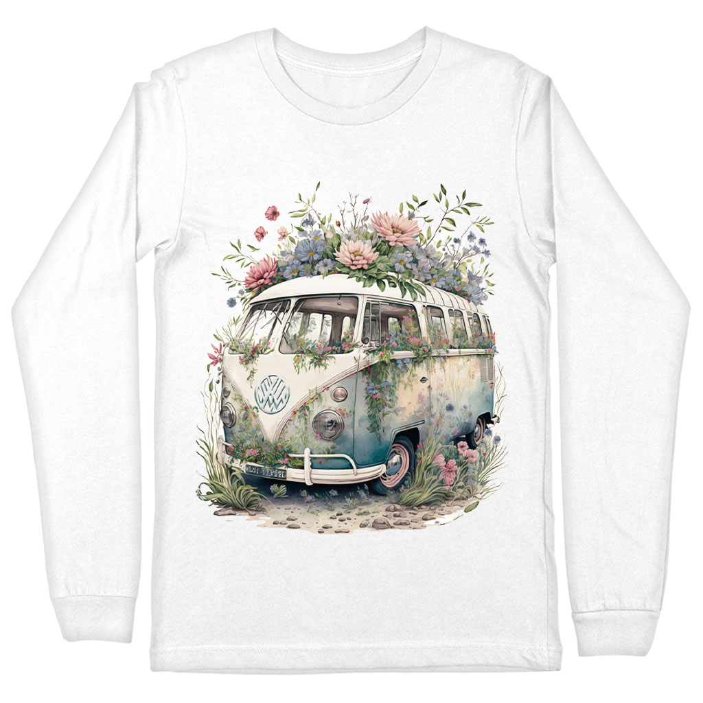 Bus Long Sleeve T-Shirt is proudly made with 7x less water than average manufacturers, in recycle-friendly facilities that also guarantee zero sweatshop conditions. Floral Design is designed and printed in California.