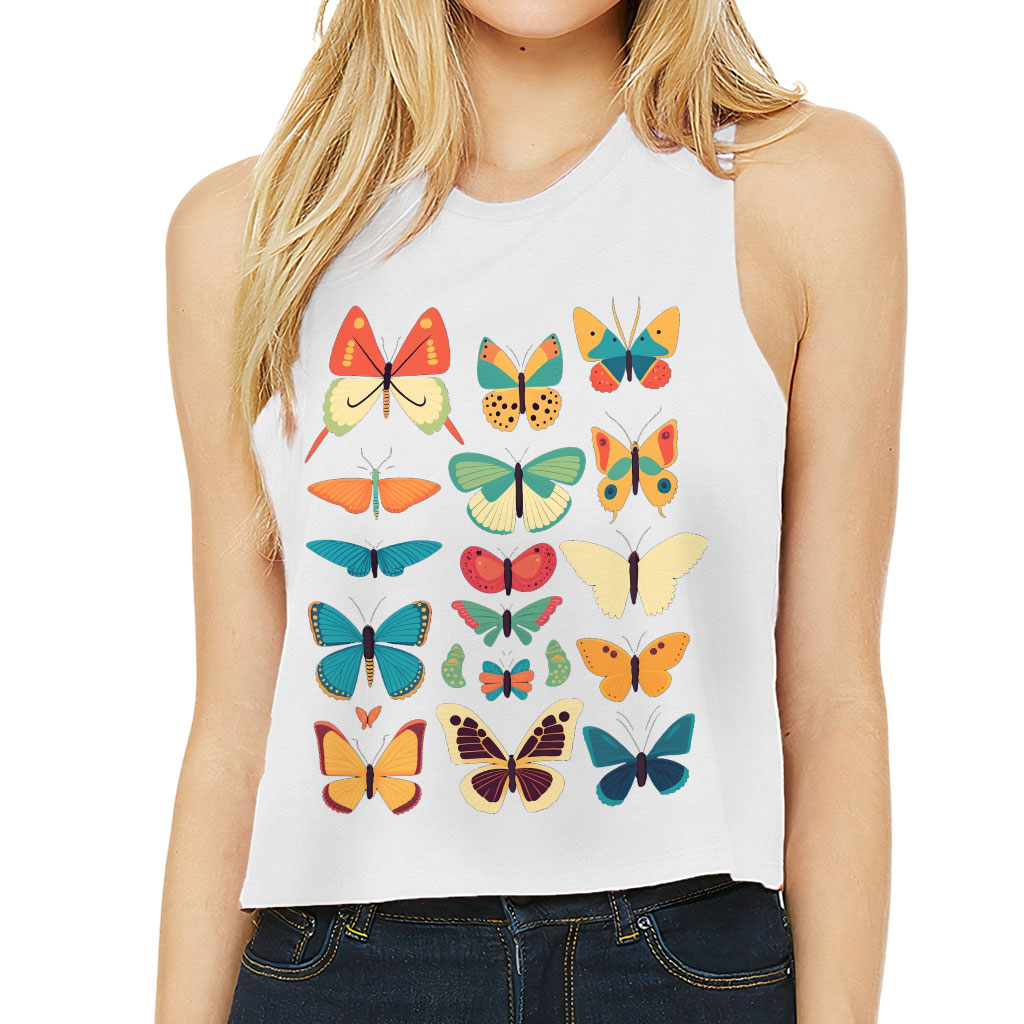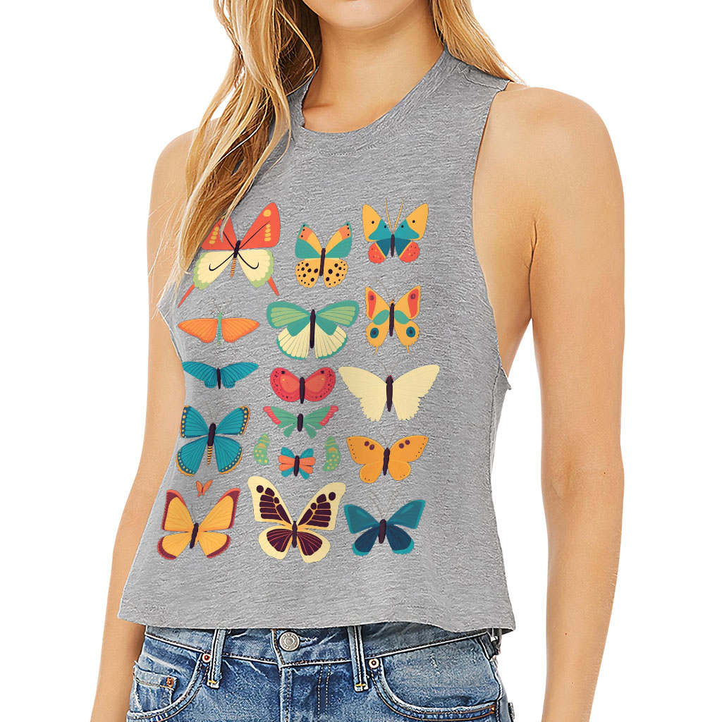 Butterfly Print Racerback Cropped Tank – Cute Graphic Women’s Tank – Best Print Tank Top