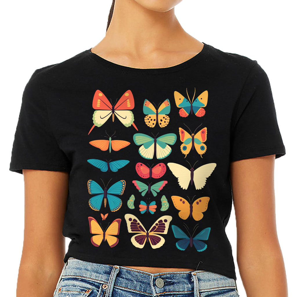 Butterfly Print Women’s Cropped T-Shirt is no ordinary piece of clothing. Its form-fitting silhouette and soft fit and feel provide a retail fit for clothing that’s true to size.