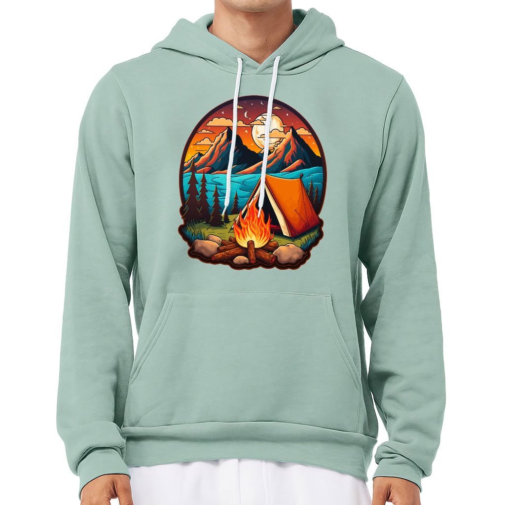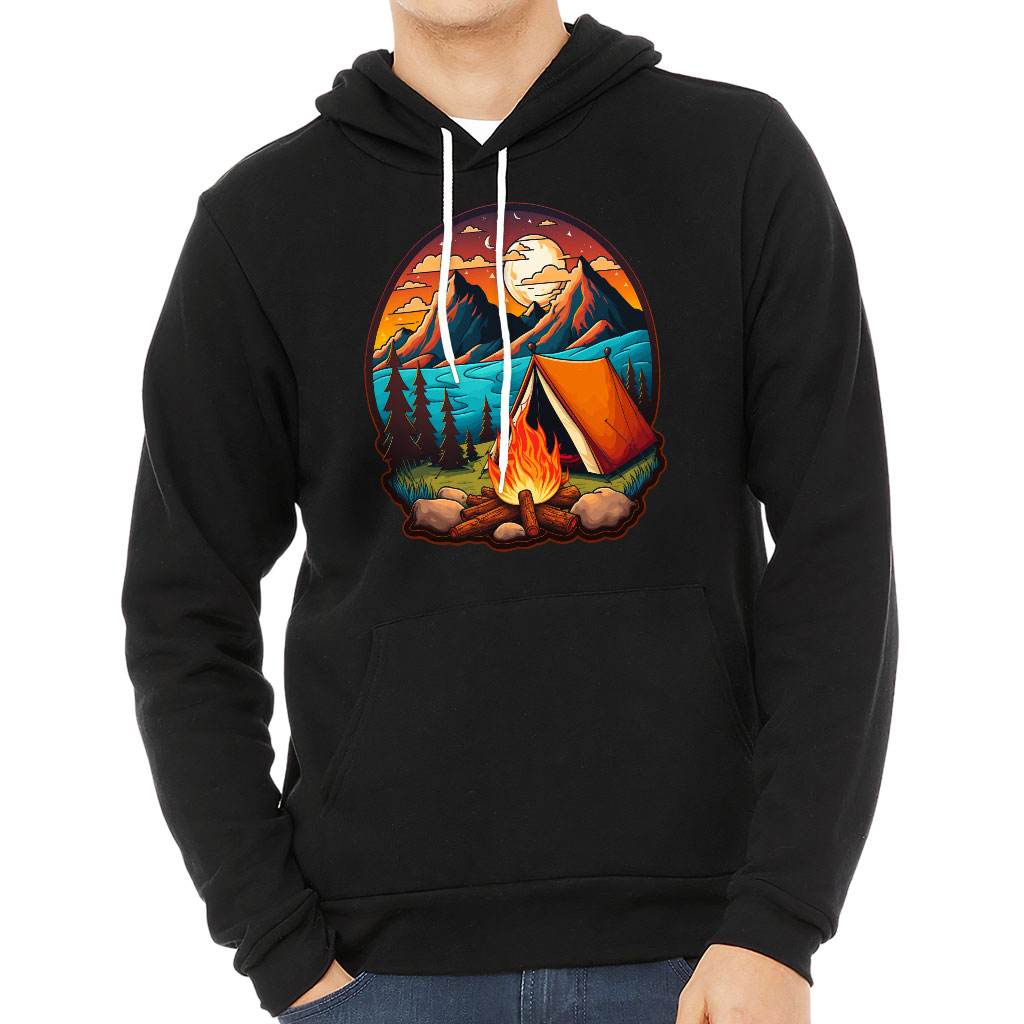 Camping Design Sponge Fleece Hoodie – Nature Hoodie – Illustration Hooded Sweatshirt