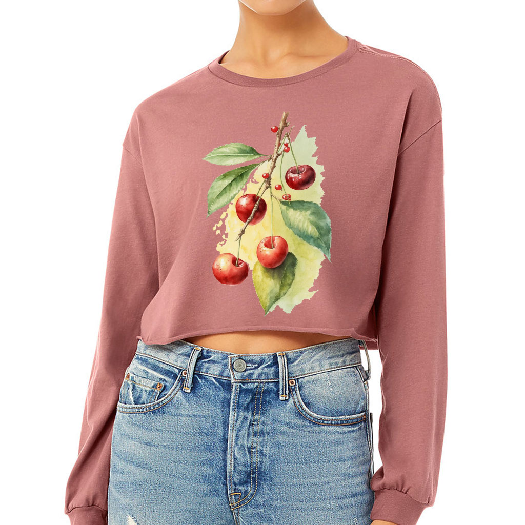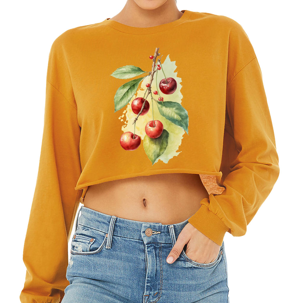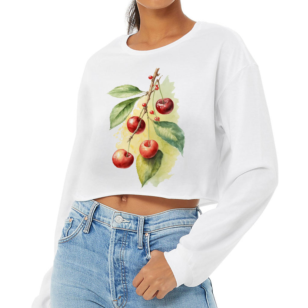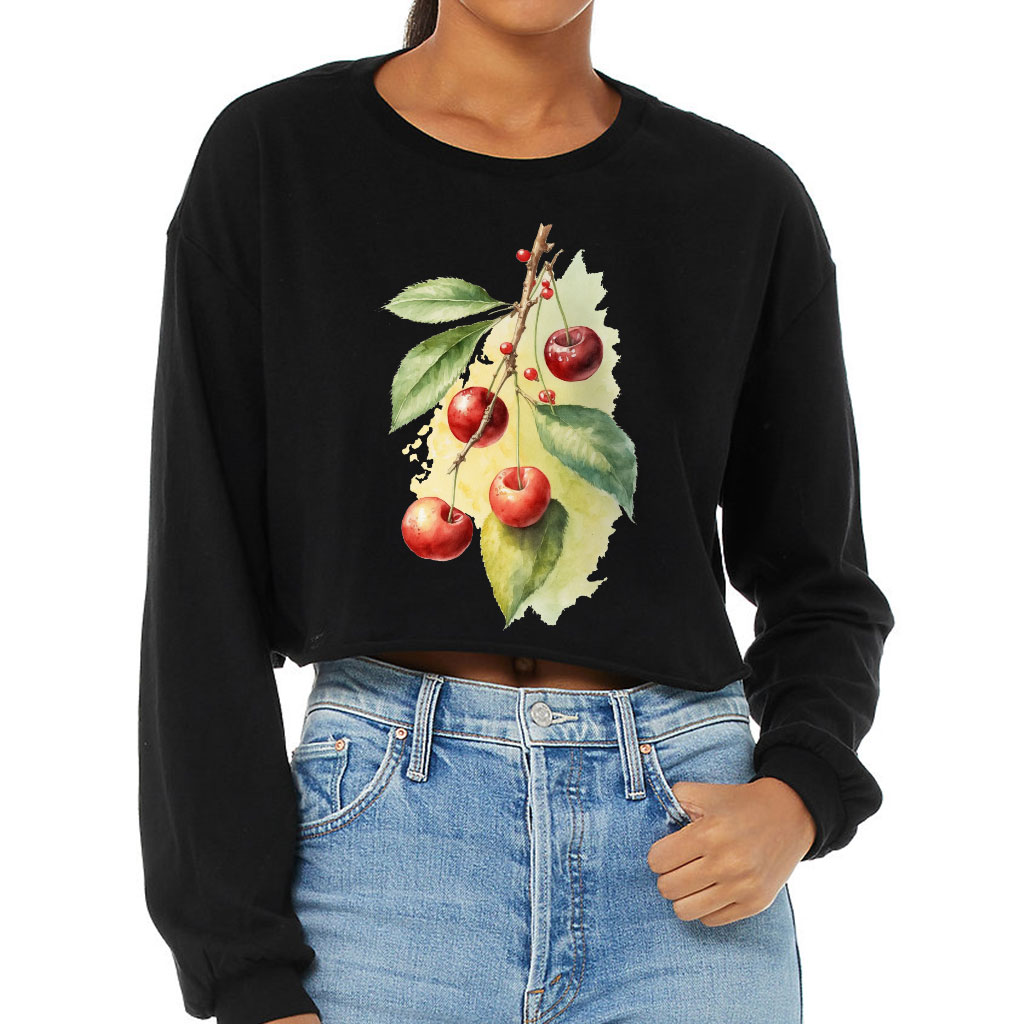 Cherry Print Cropped Long Sleeve T-Shirt