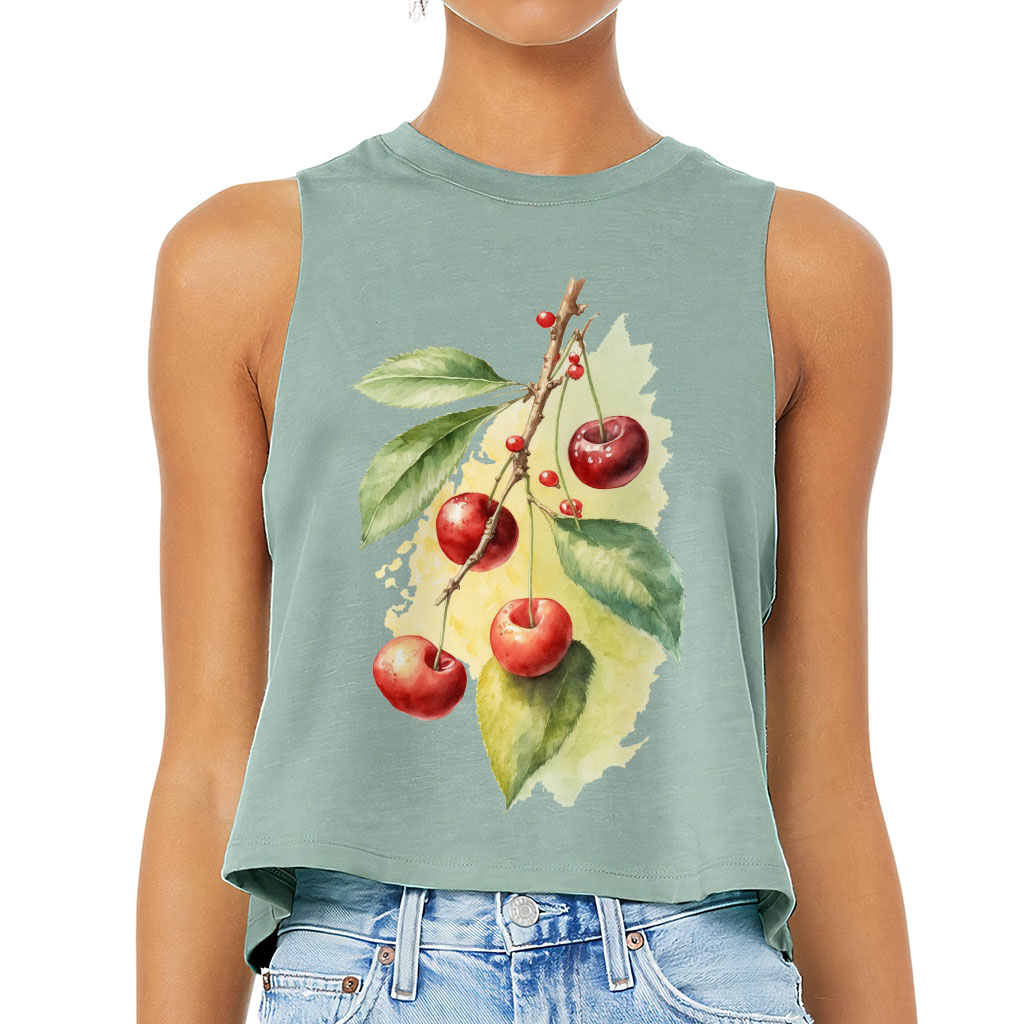Cherry Print Racerback Cropped Tank