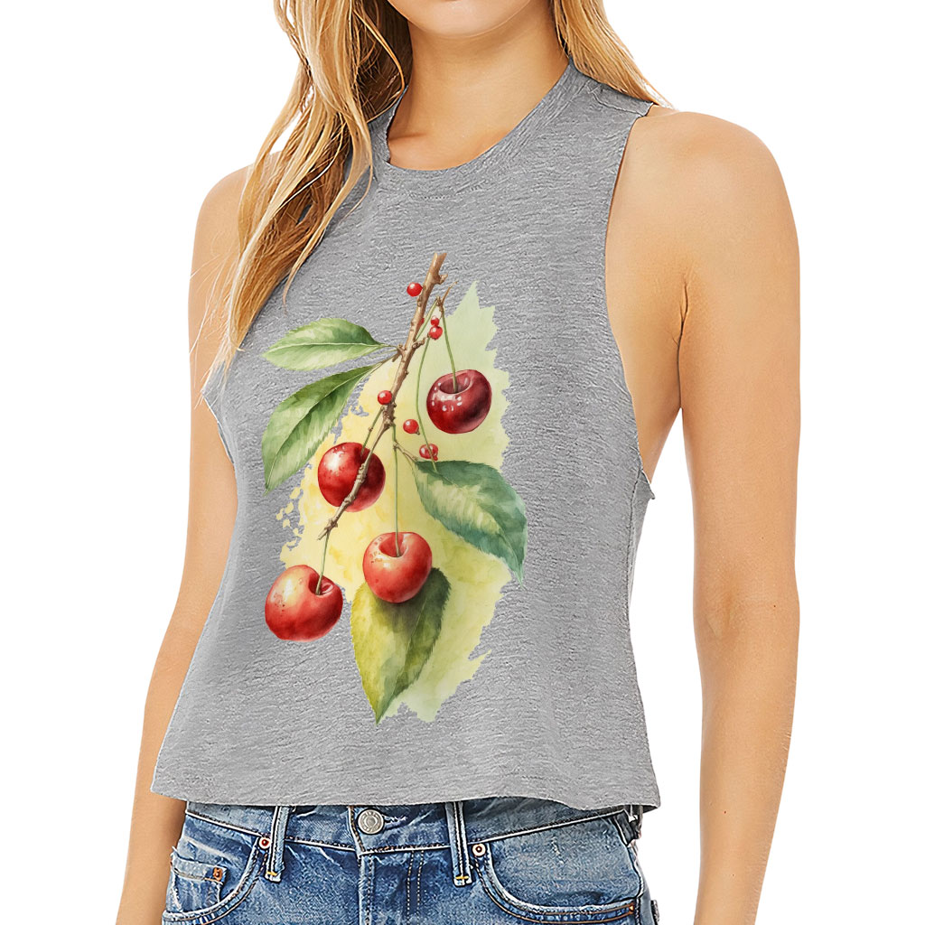 Cherry Print Racerback Cropped Tank is made of high-quality materials. 52/48 Airlume combed and ring-spun cotton/polyester jersey. Athletic Heather is 90/10 Airlume combed and ring-spun cotton/polyester jersey.