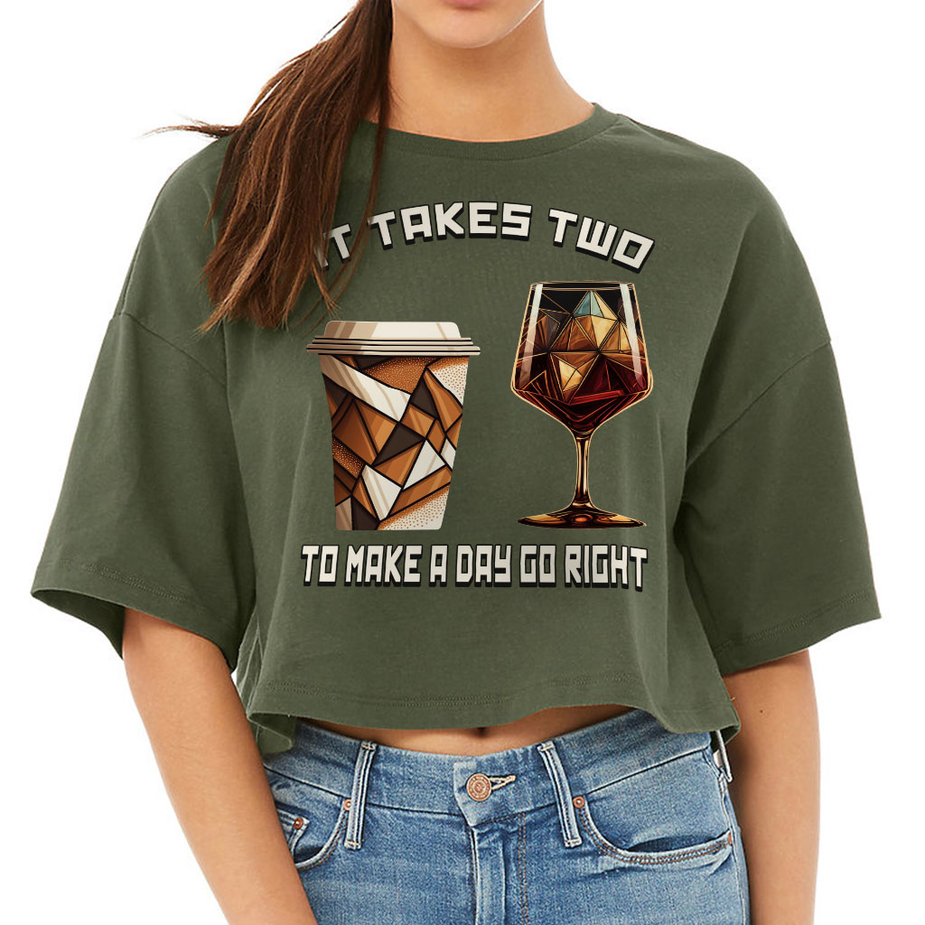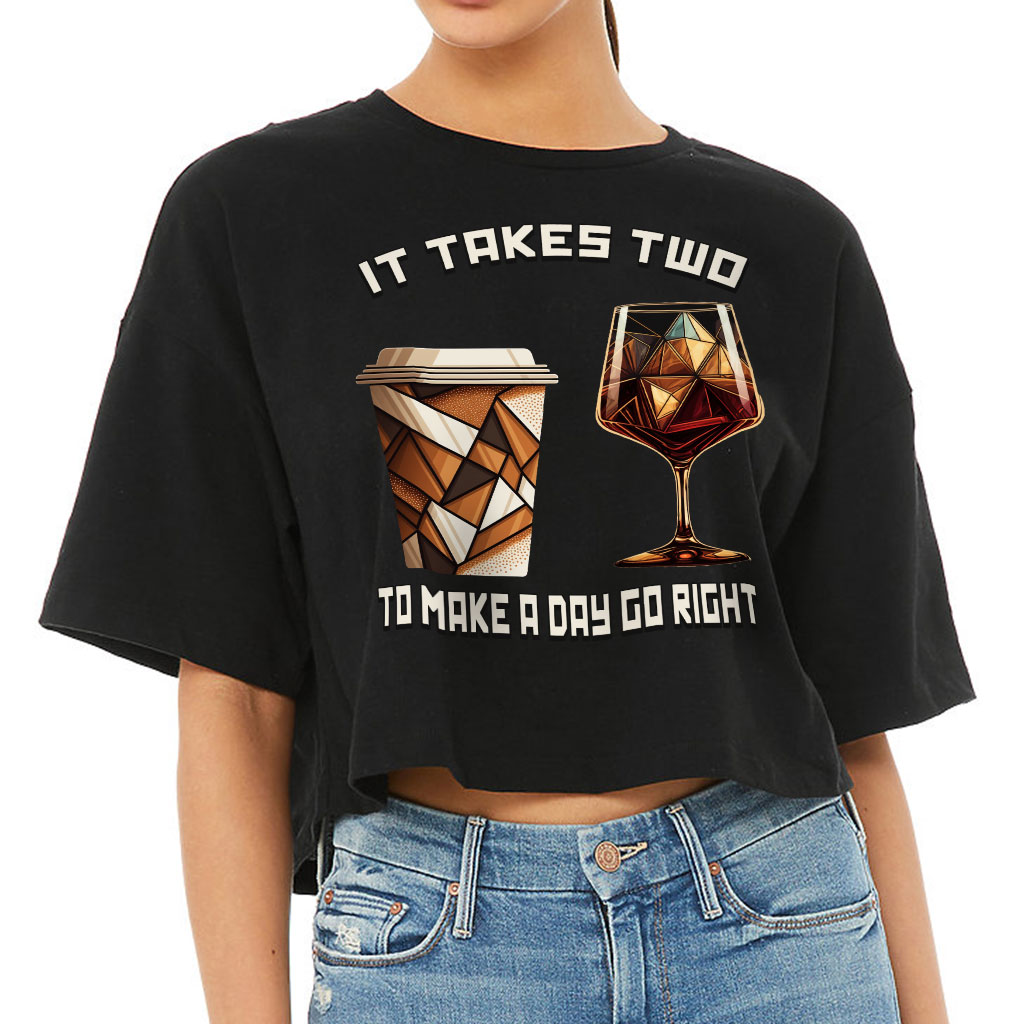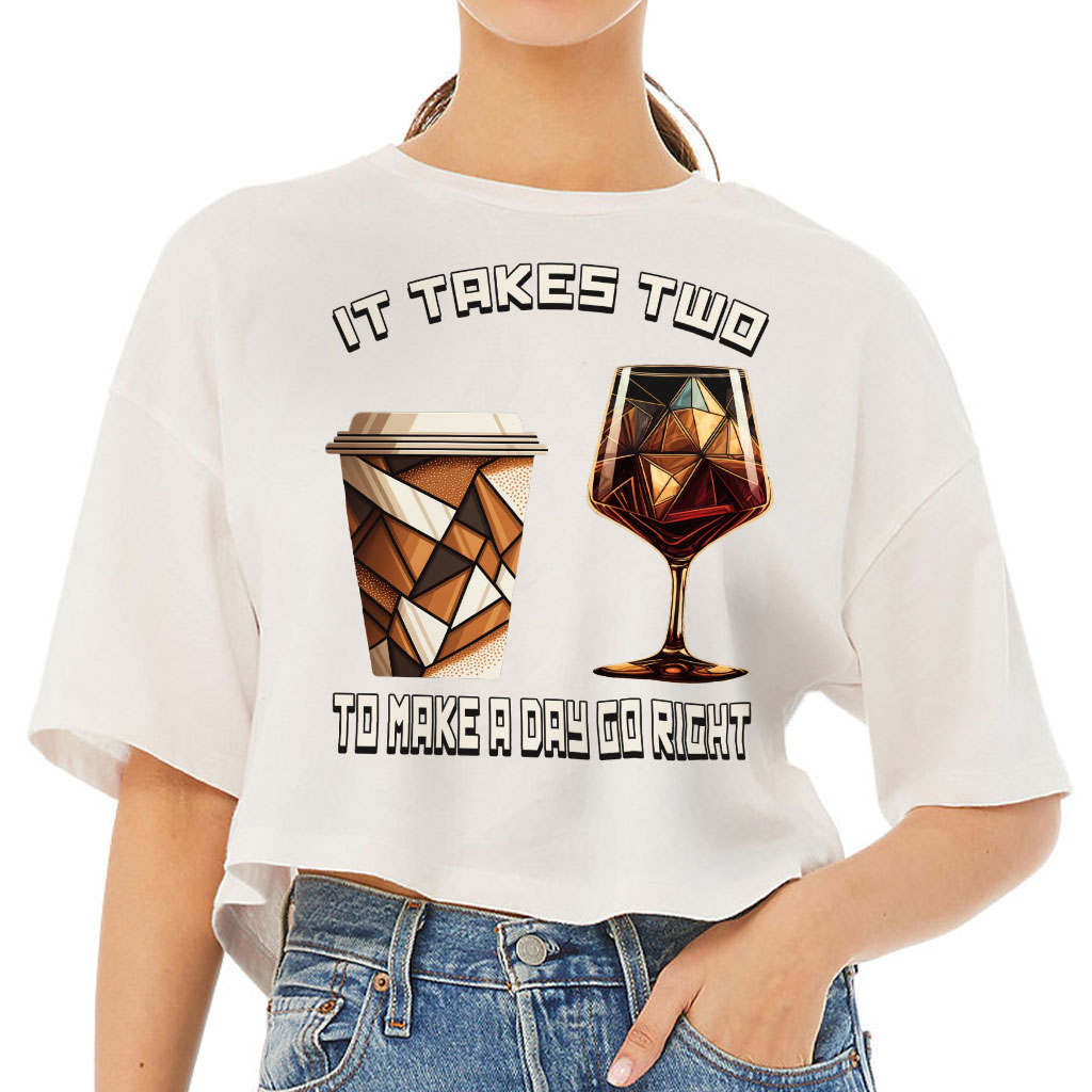 Coffee Wine Women’s Crop Tee Shirt – Funny Cropped T-Shirt – Best Design Crop Top
