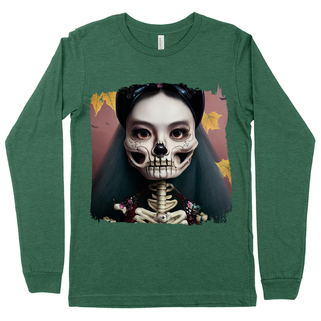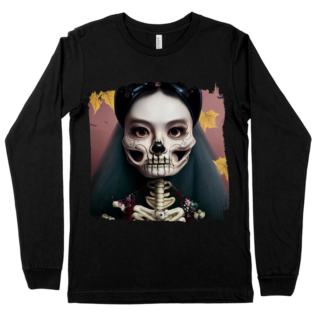 Cool Skeleton Long Sleeve T-Shirt – Floral T-Shirt – Halloween Print Long Sleeve Tee Shirt