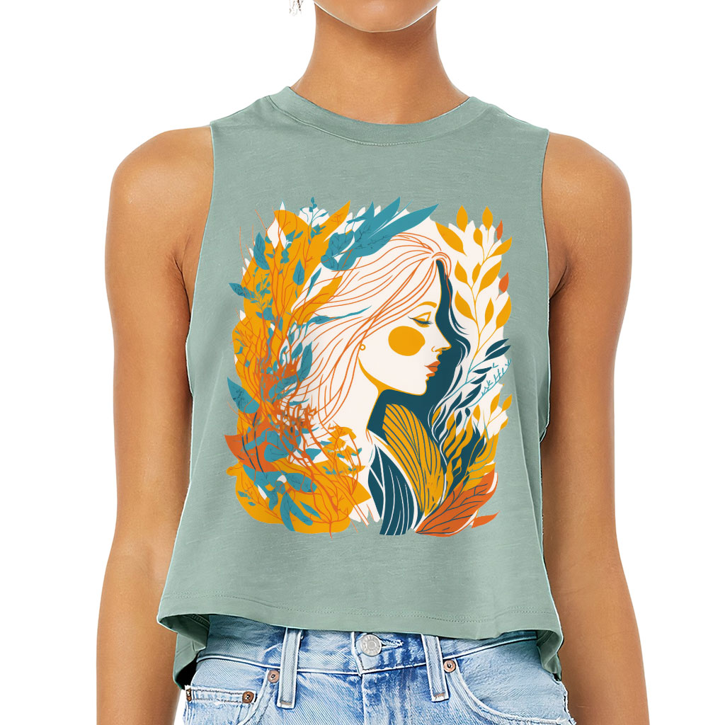 Show off your style with Artwork! This cool and comfortable top is just what your wardrobe needs. Featuring a side-seamed relaxed fit that falls softly from the shoulders to a cropped finish, it’s perfect for flaunting your figure. Brass-colored raw edge arm holes and a racerback provide an extra touch of stylish detail to this charming tank. Wear Printed out and about or keep it for relaxing days at home – the perfect way to stay one step ahead in style!