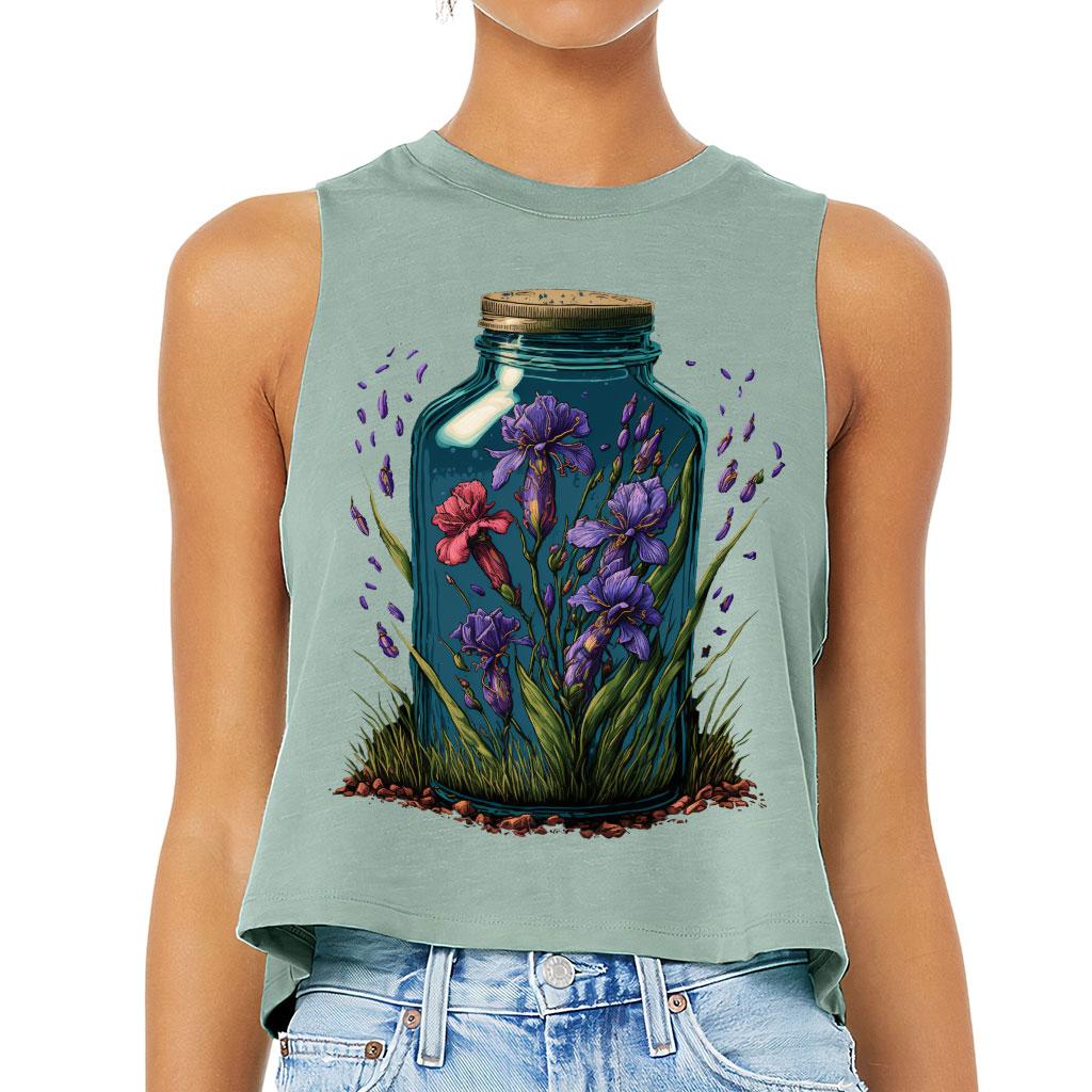 Show off your style with Flowers! This cool and comfortable top is just what your wardrobe needs. Featuring a side-seamed relaxed fit that falls softly from the shoulders to a cropped finish, it’s perfect for flaunting your figure. Brass-colored raw edge arm holes and a racerback provide an extra touch of stylish detail to this charming tank. Wear Unique out and about or keep it for relaxing days at home – the perfect way to stay one step ahead in style!