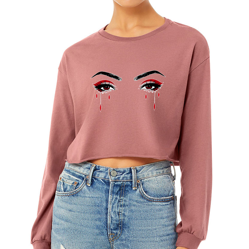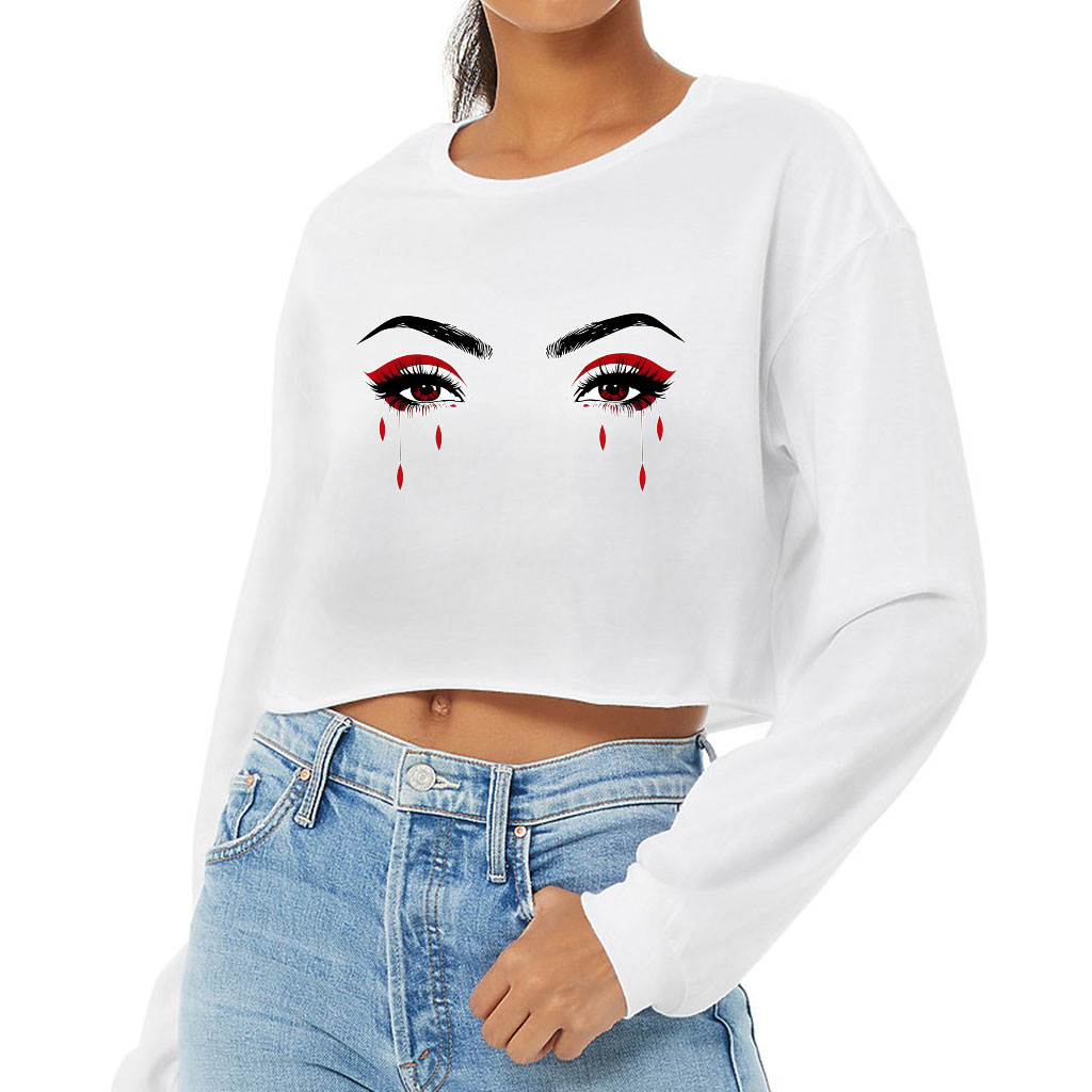 Eyes Design Cropped Long Sleeve T-Shirt