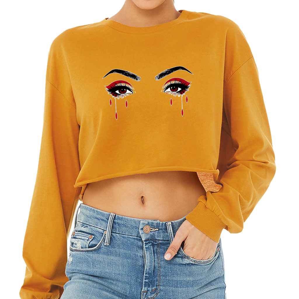 Soft but durable cotton material will never let you down. Eyes Design Cropped Long Sleeve T-Shirt makes you have a good wear experience all day. Suitable for summer days, parties, traveling and casual wear.