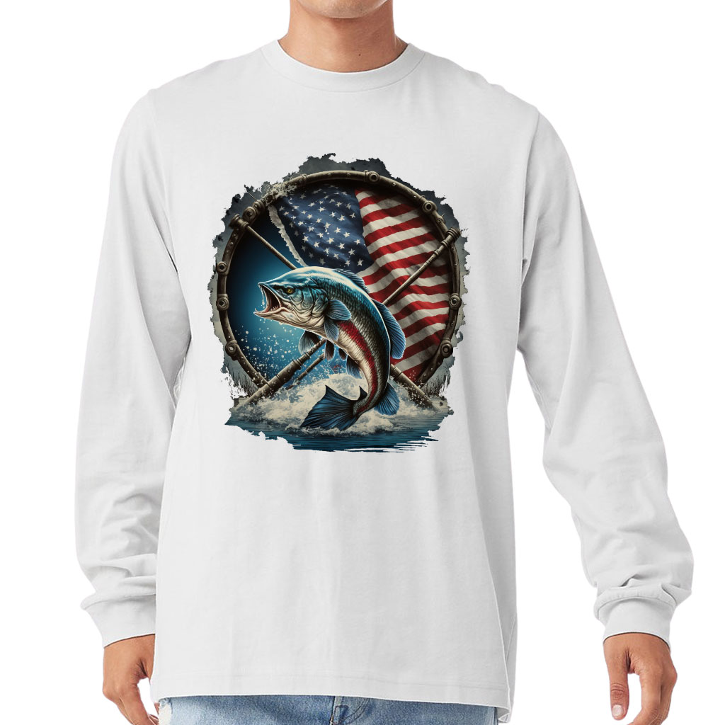 Flag Behind Bass Fishing Long Sleeve T-Shirt