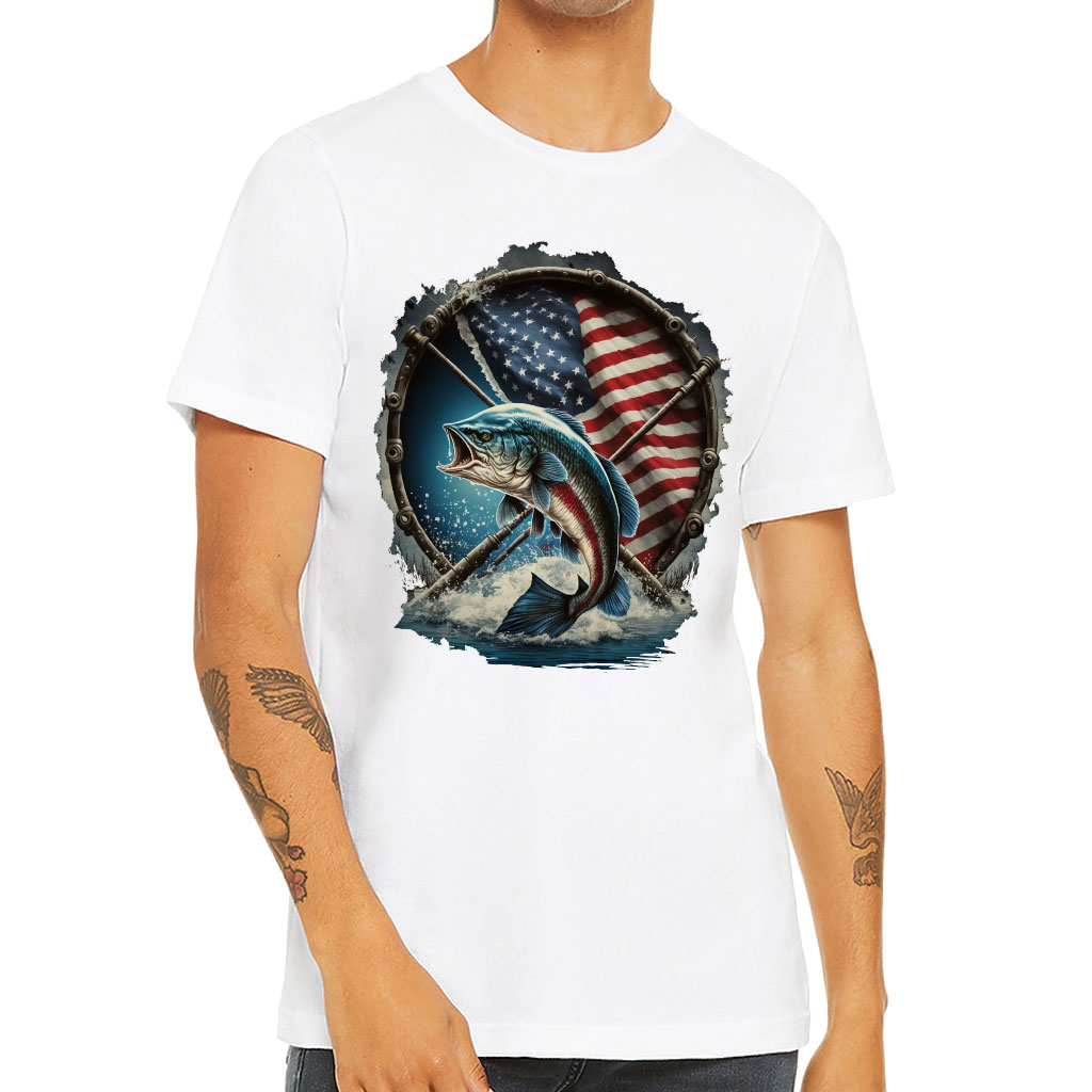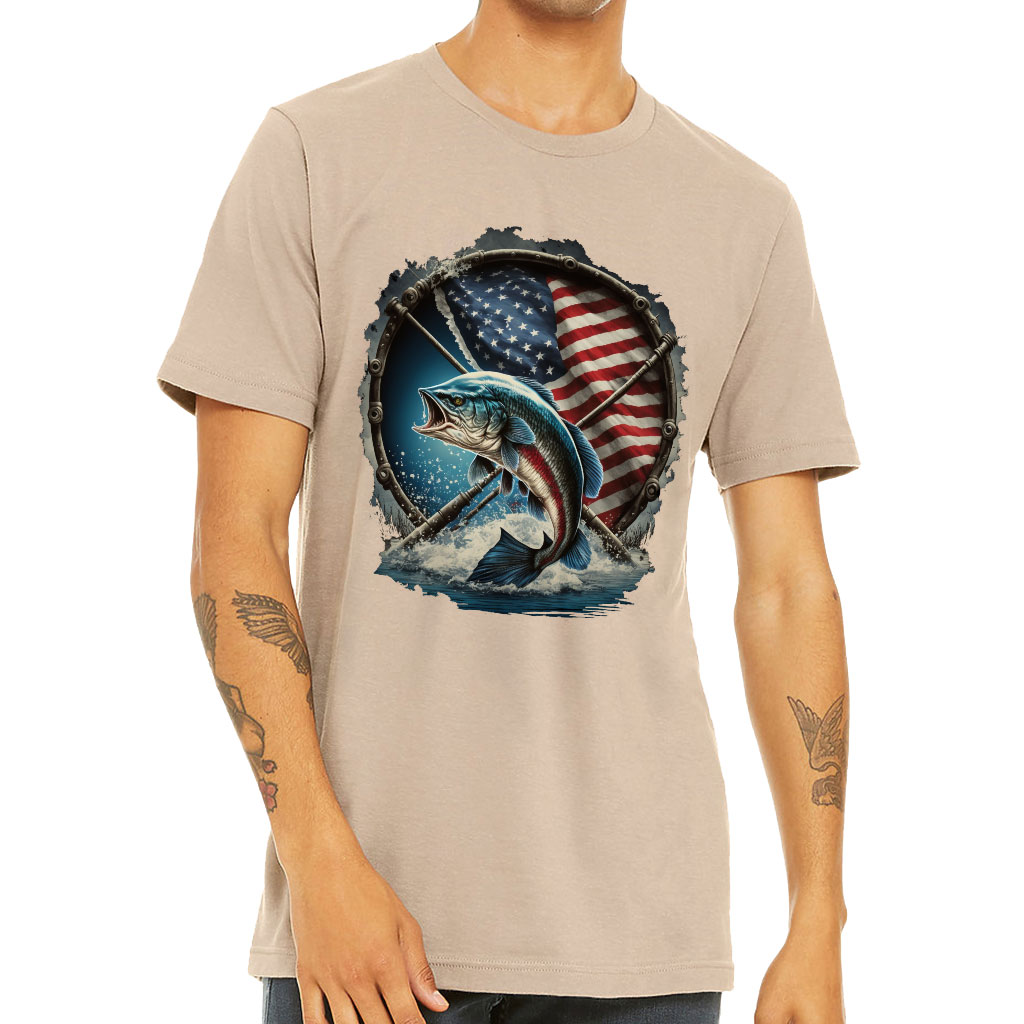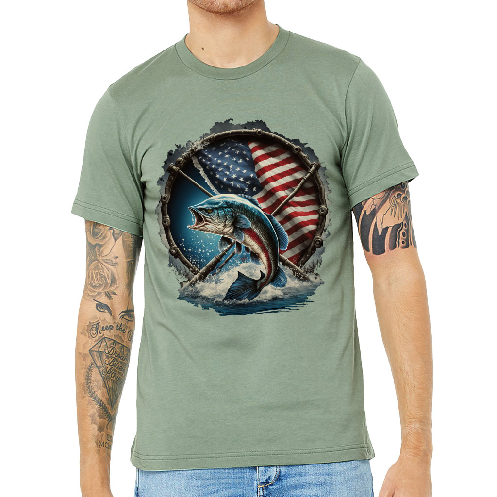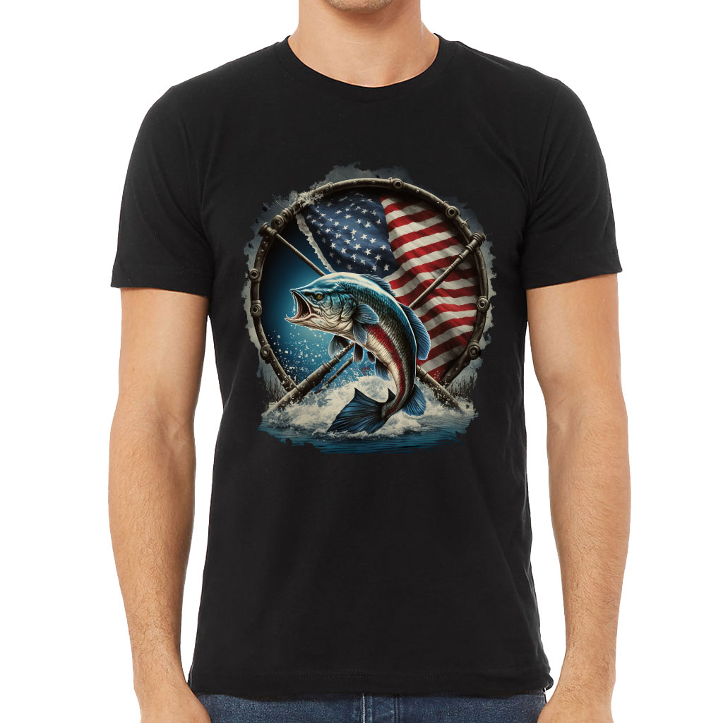 Flag Behind Bass Fishing Short Sleeve T-Shirt