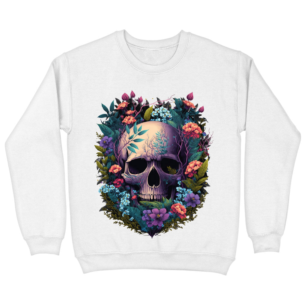Floral Skull Sweatshirt is made from a 50% U.S. Cotton/50% Polyester blend, this warm