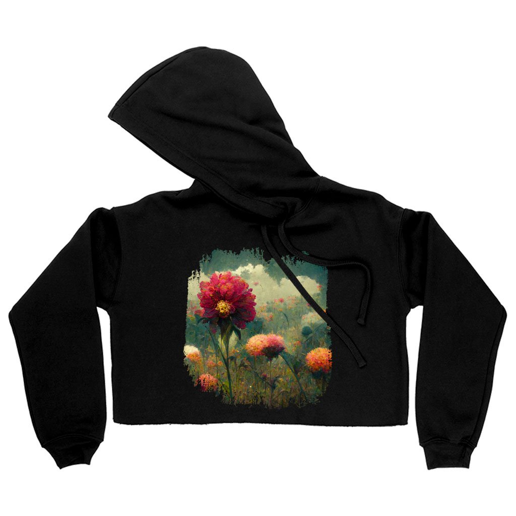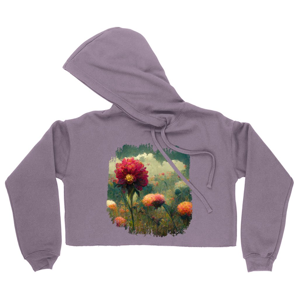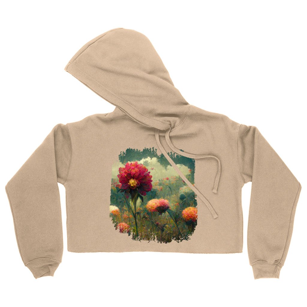 Flower Dahlia Women’s Cropped Fleece Hoodie – Nature Cropped Hoodie for Women – Colorful Hooded Sweatshirt