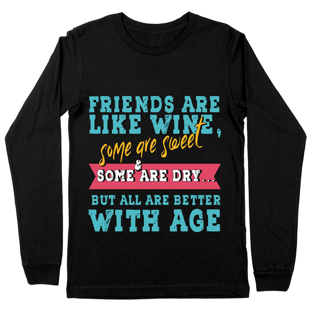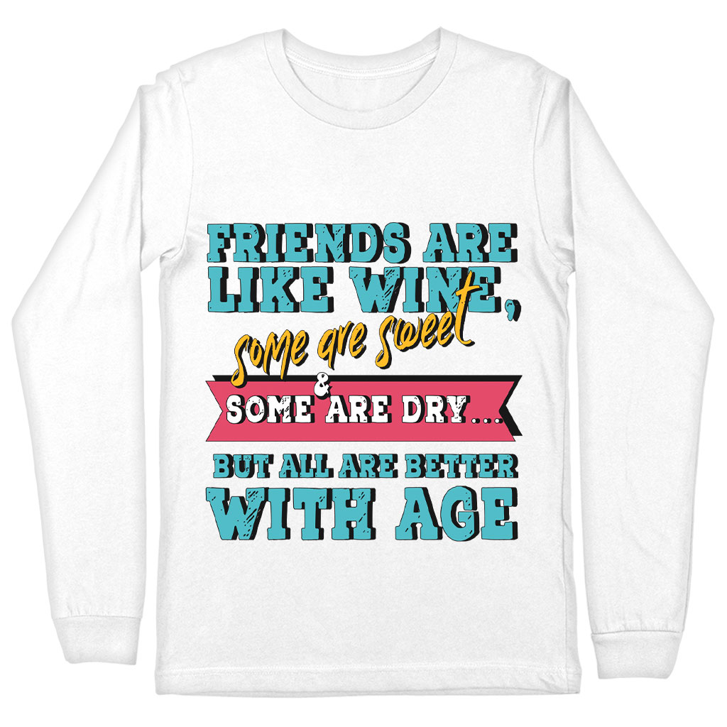 See why people love Friends and Wine Long Sleeve T-Shirt – Quotes T-Shirt – Funny Long Sleeve Tee