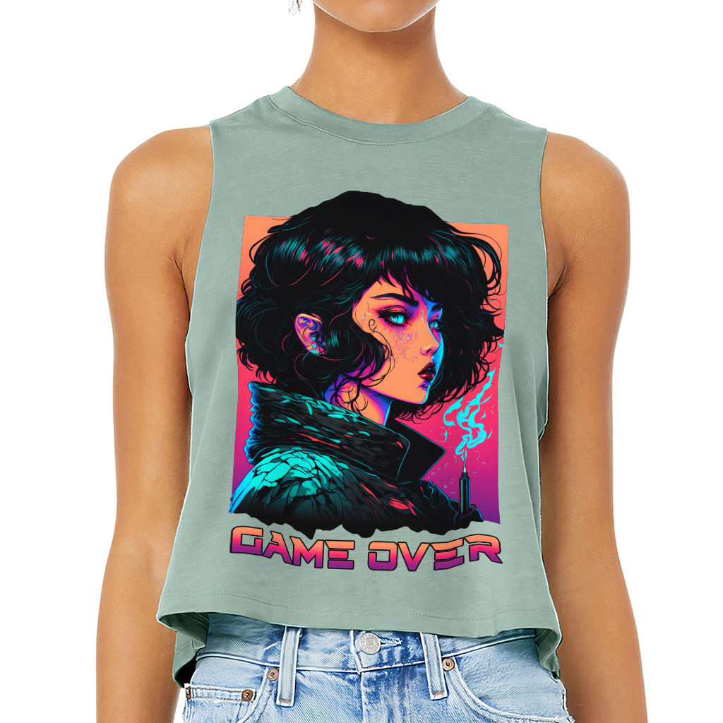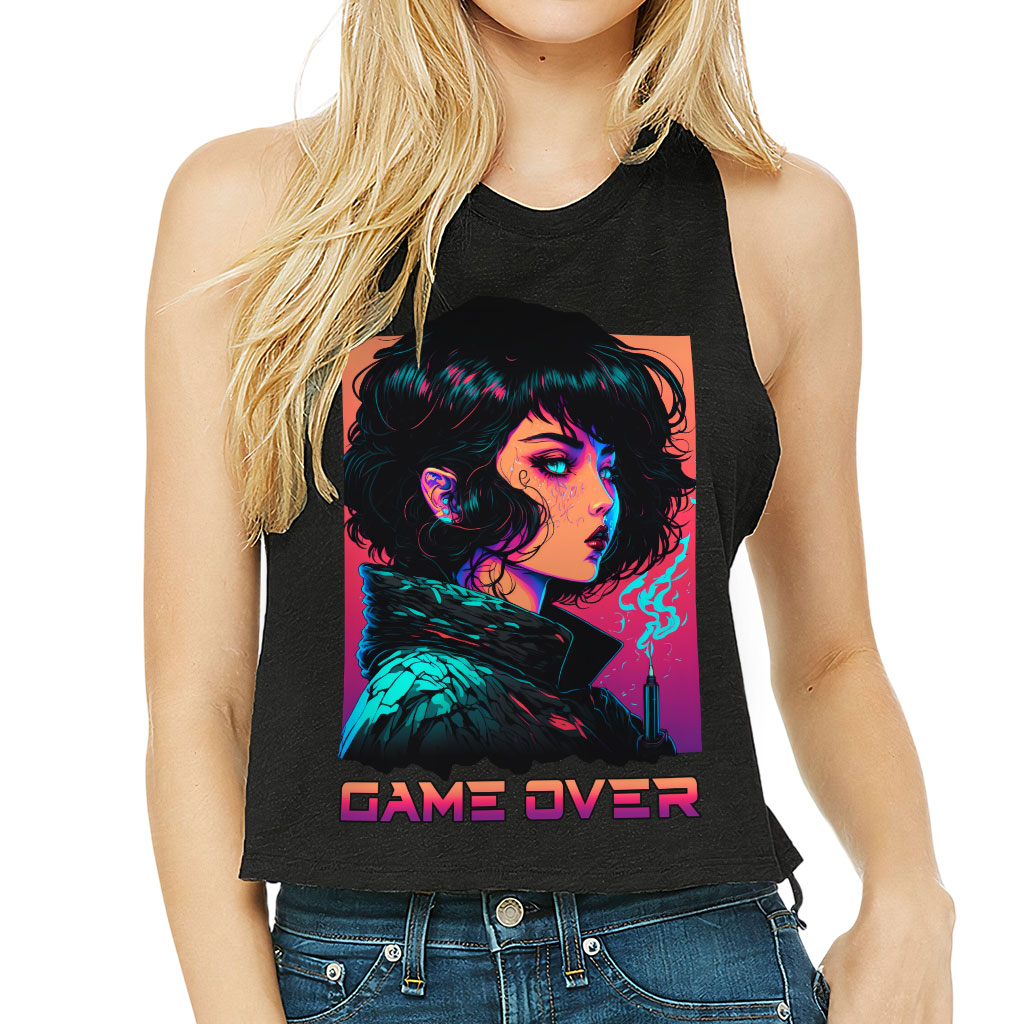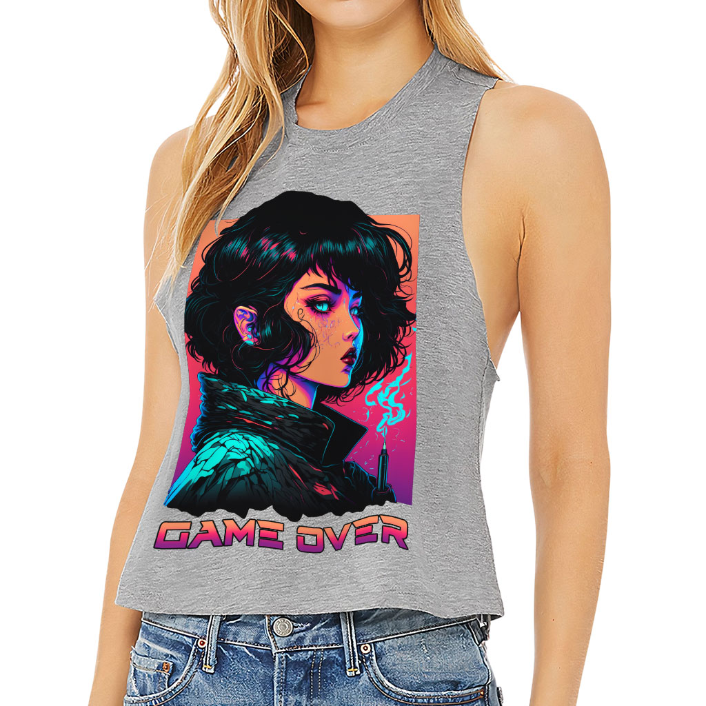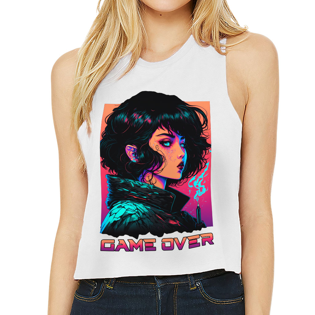 Game Over Racerback Cropped Tank – Cool Art Women’s Tank – Illustration Tank Top