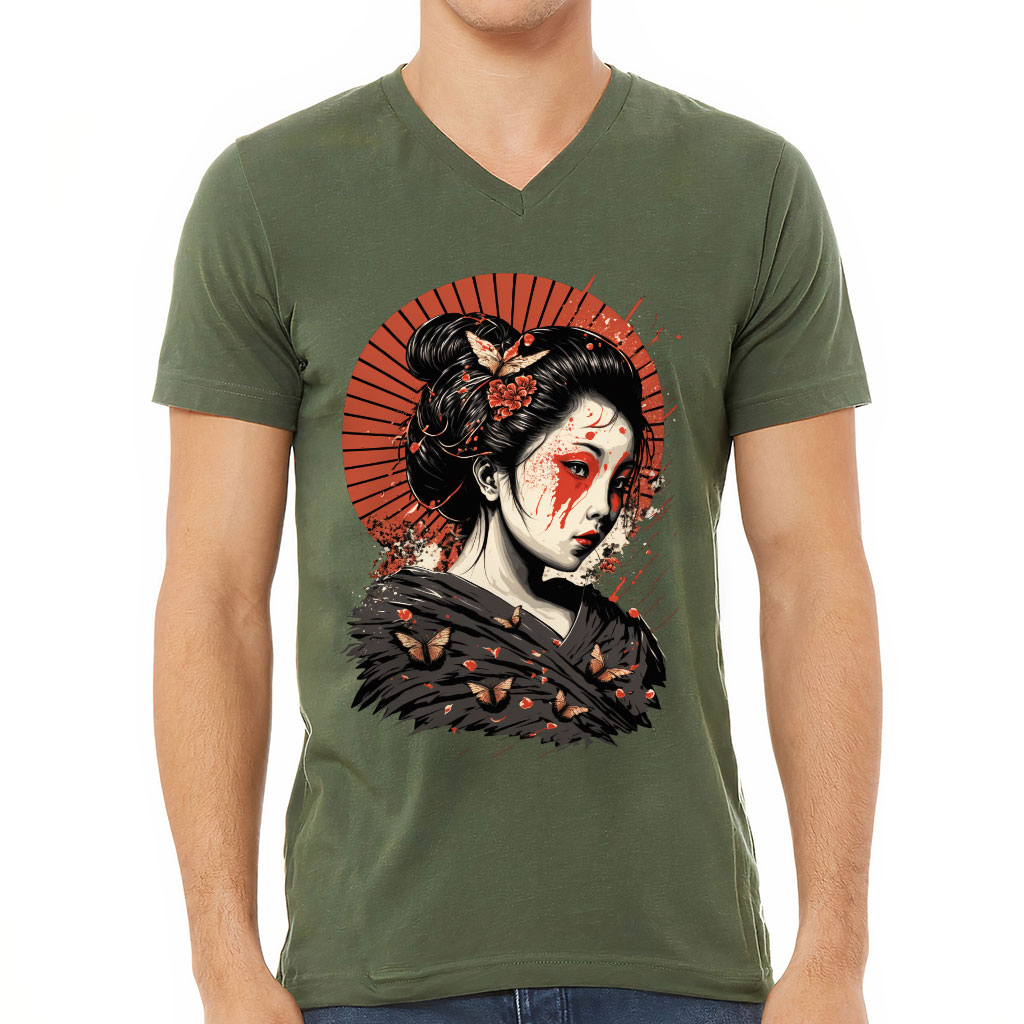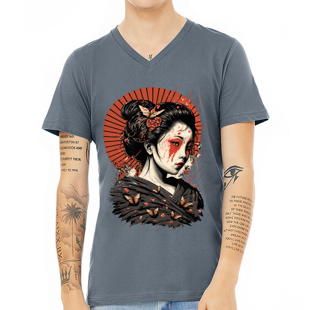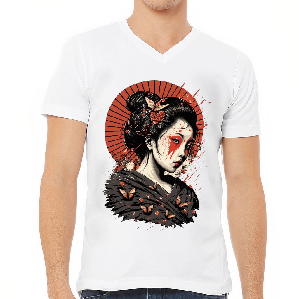 Geisha V-Neck T-Shirt – Japanese Art T-Shirt – Printed V-Neck Tee
