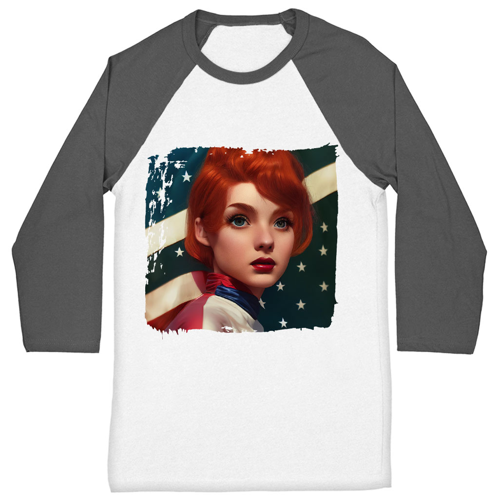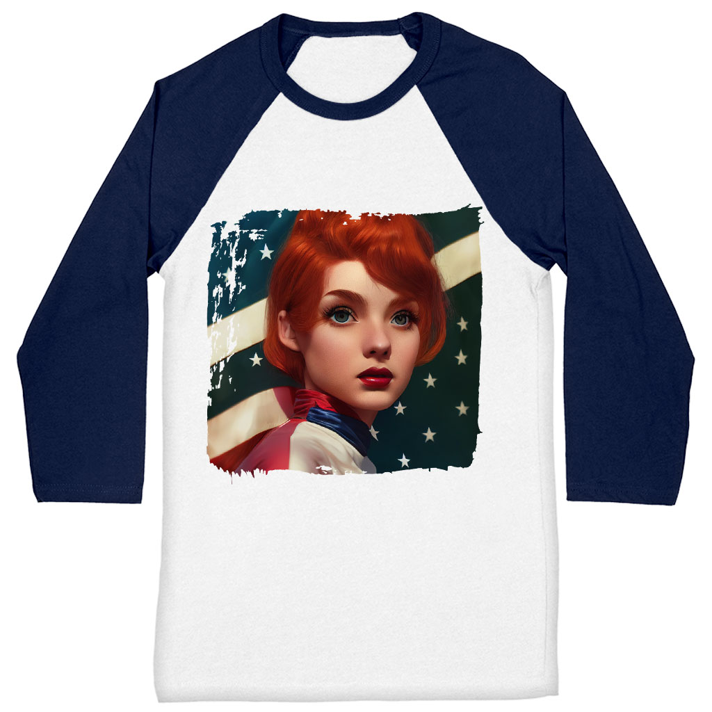 Girl Red Hair American Flag Baseball T-Shirt – Art T-Shirt – Cool Tee Shirt