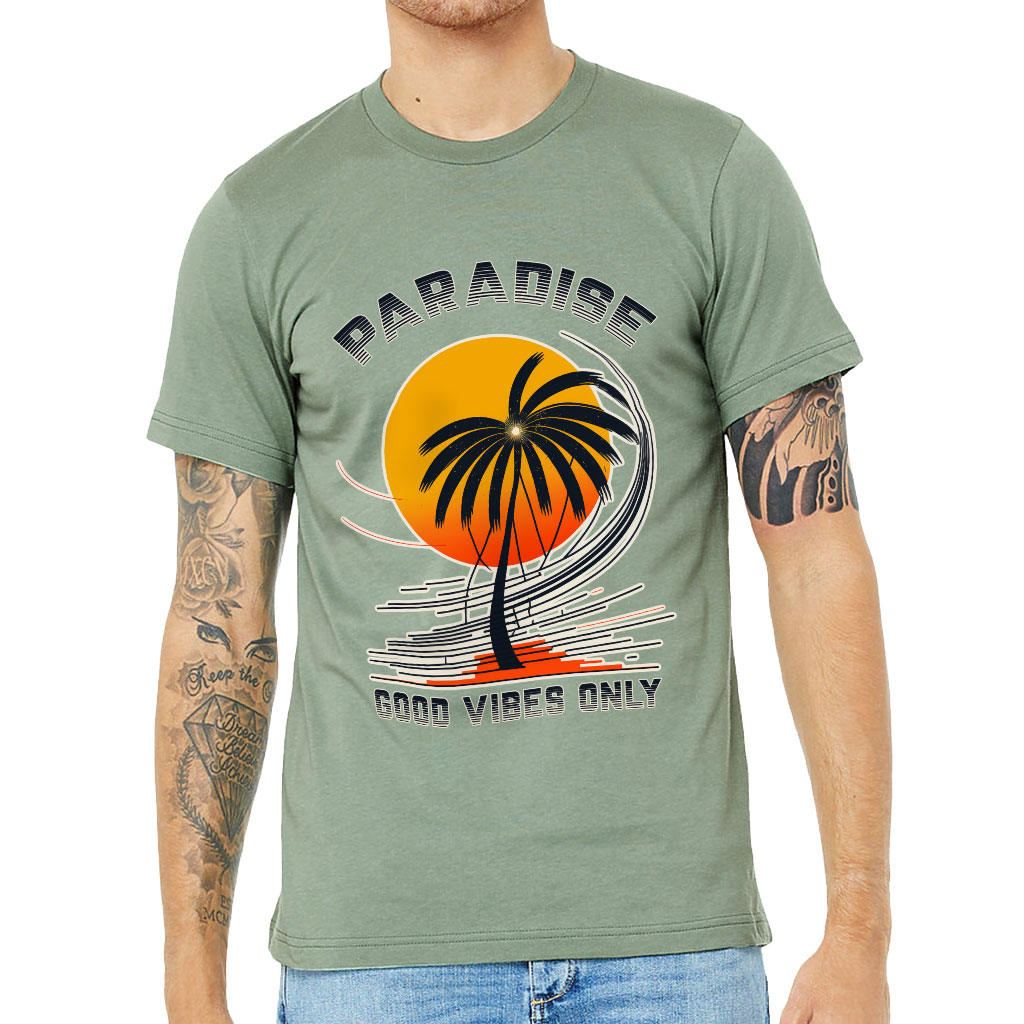 Paradise is perfect for any occasion! With a retail fit and shoulder taping, this men’s classic makes a statement of style and class. Made of extremely soft cotton, the Short Sleeve T-Shirt ensures comfort all day long. Sideseamed construction ensures an excellent fit that is stylish and comfortable. Palm Tree is perfect to pair with jeans or shorts for any casual event!