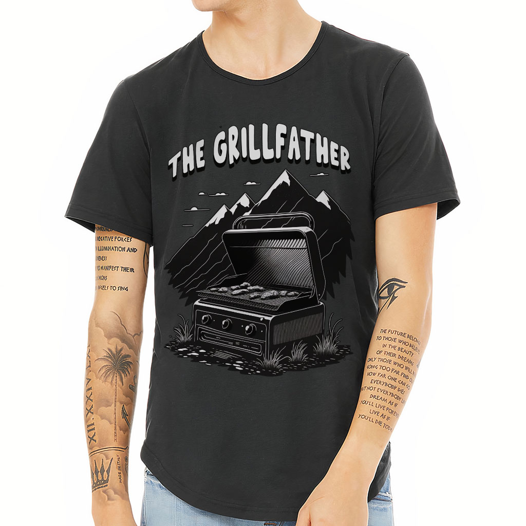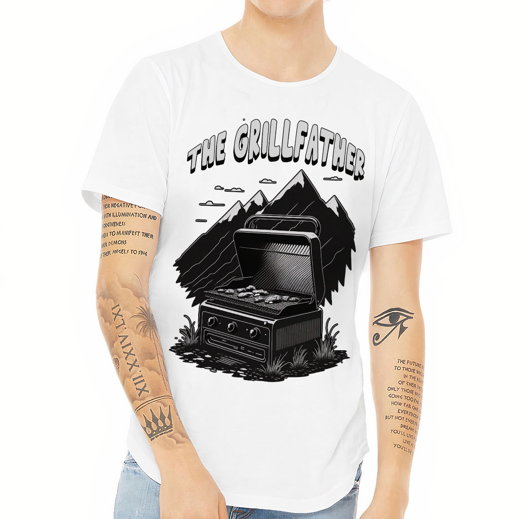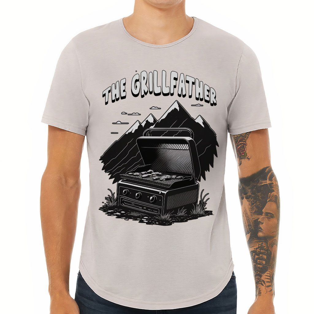 Grill Design Curved Hem T-Shirt is no ordinary piece of clothing. Its 3/8 neck binding, subtle