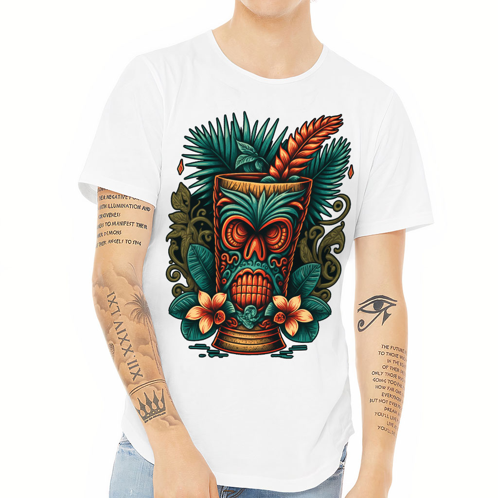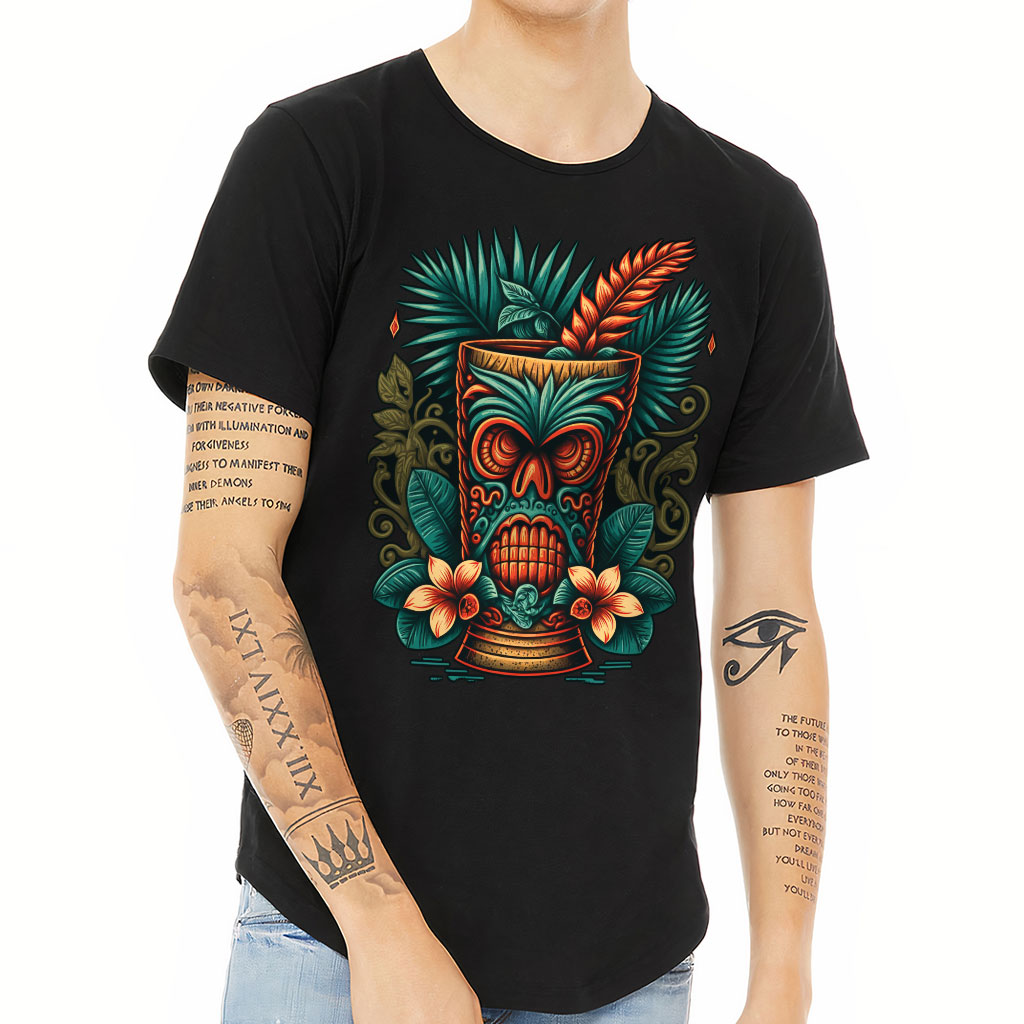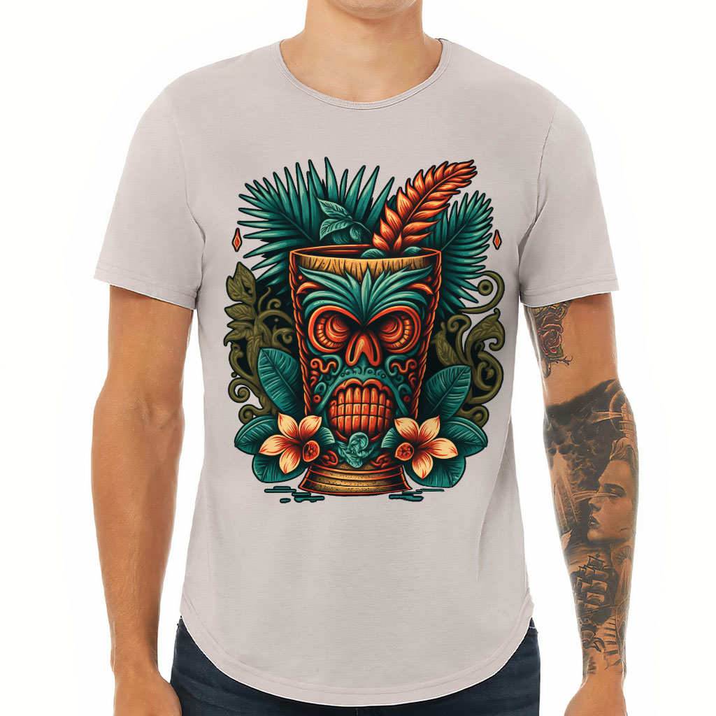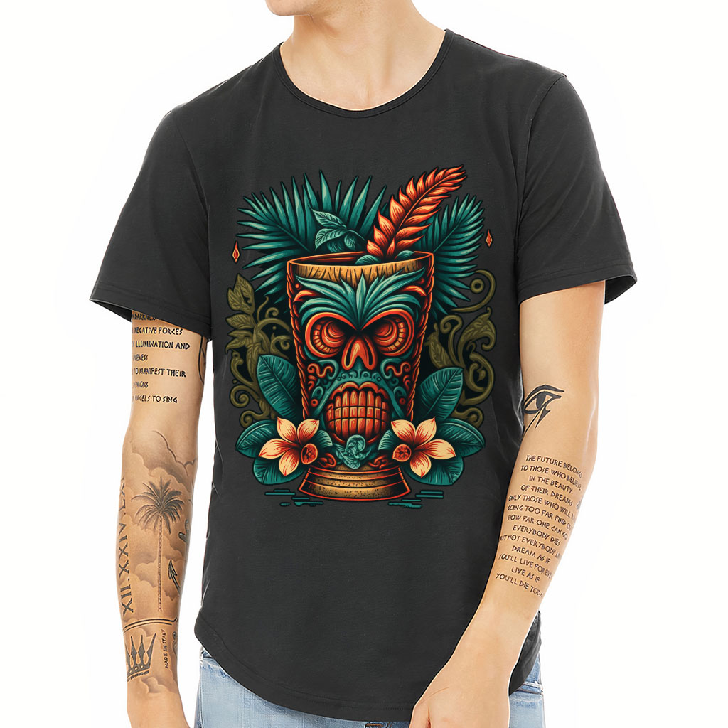 Hawaii Tiki Curved Hem T-Shirt is no ordinary piece of clothing. Its 3/8 neck binding, subtle