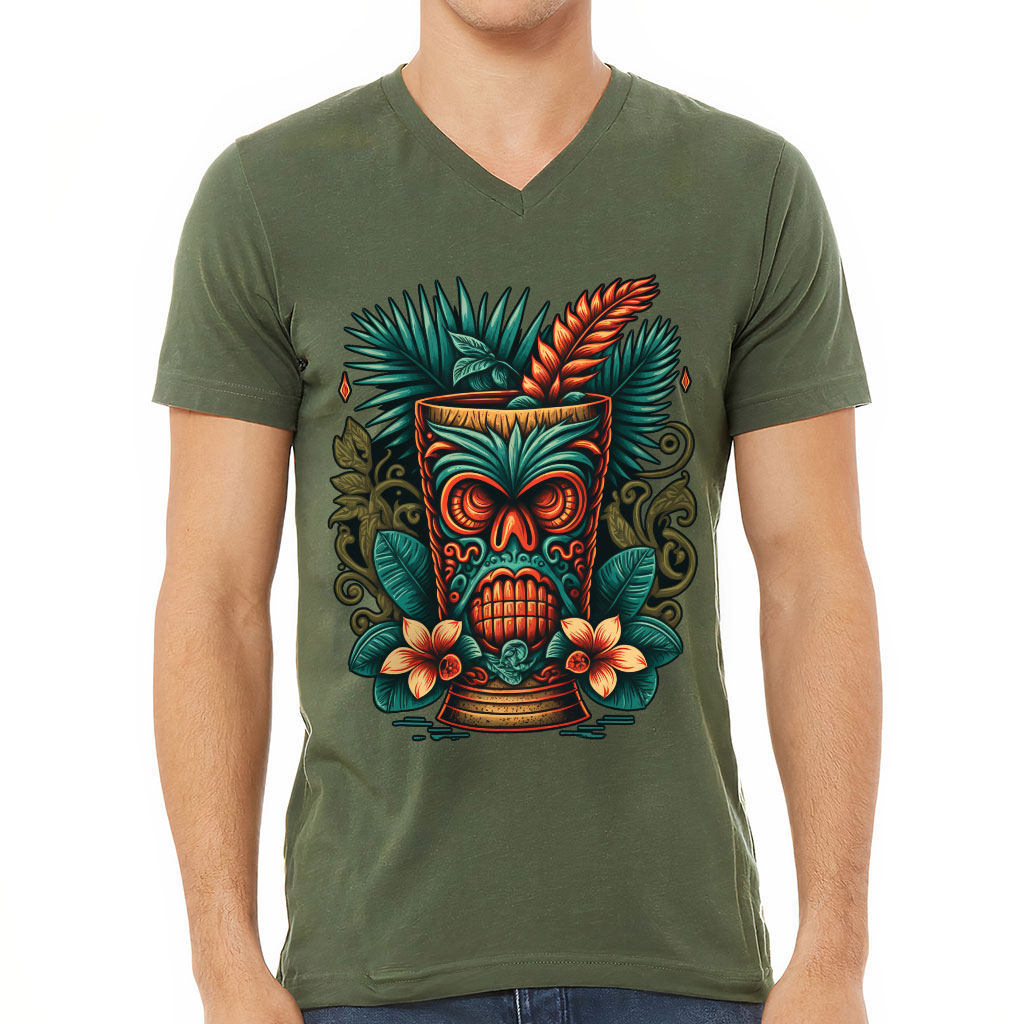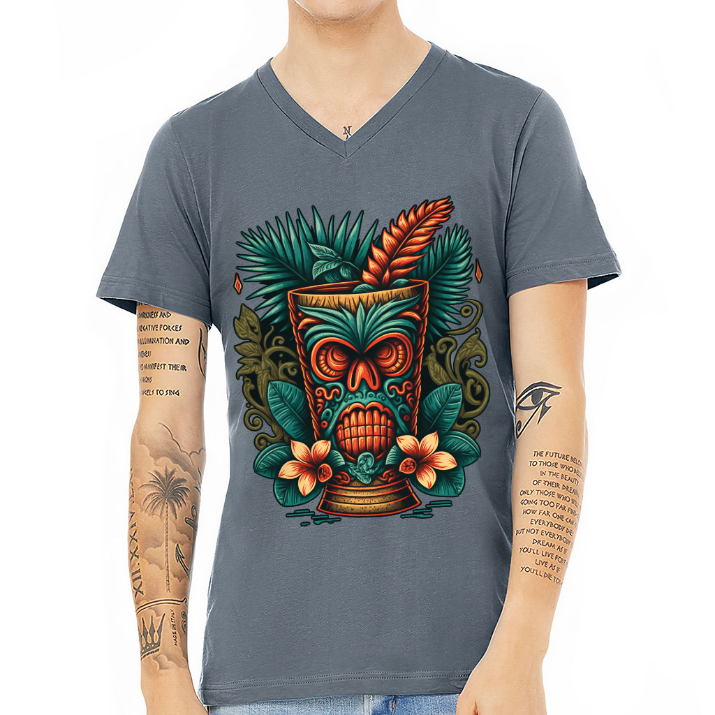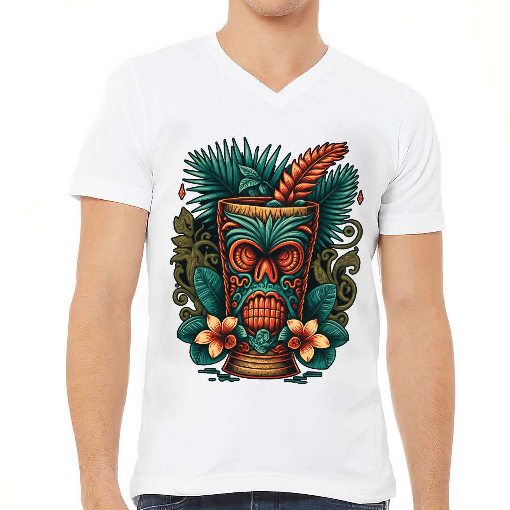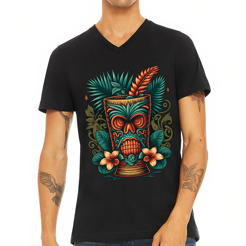 Hawaii Tiki V-Neck T-Shirt – Tropical T-Shirt – Floral V-Neck Tee