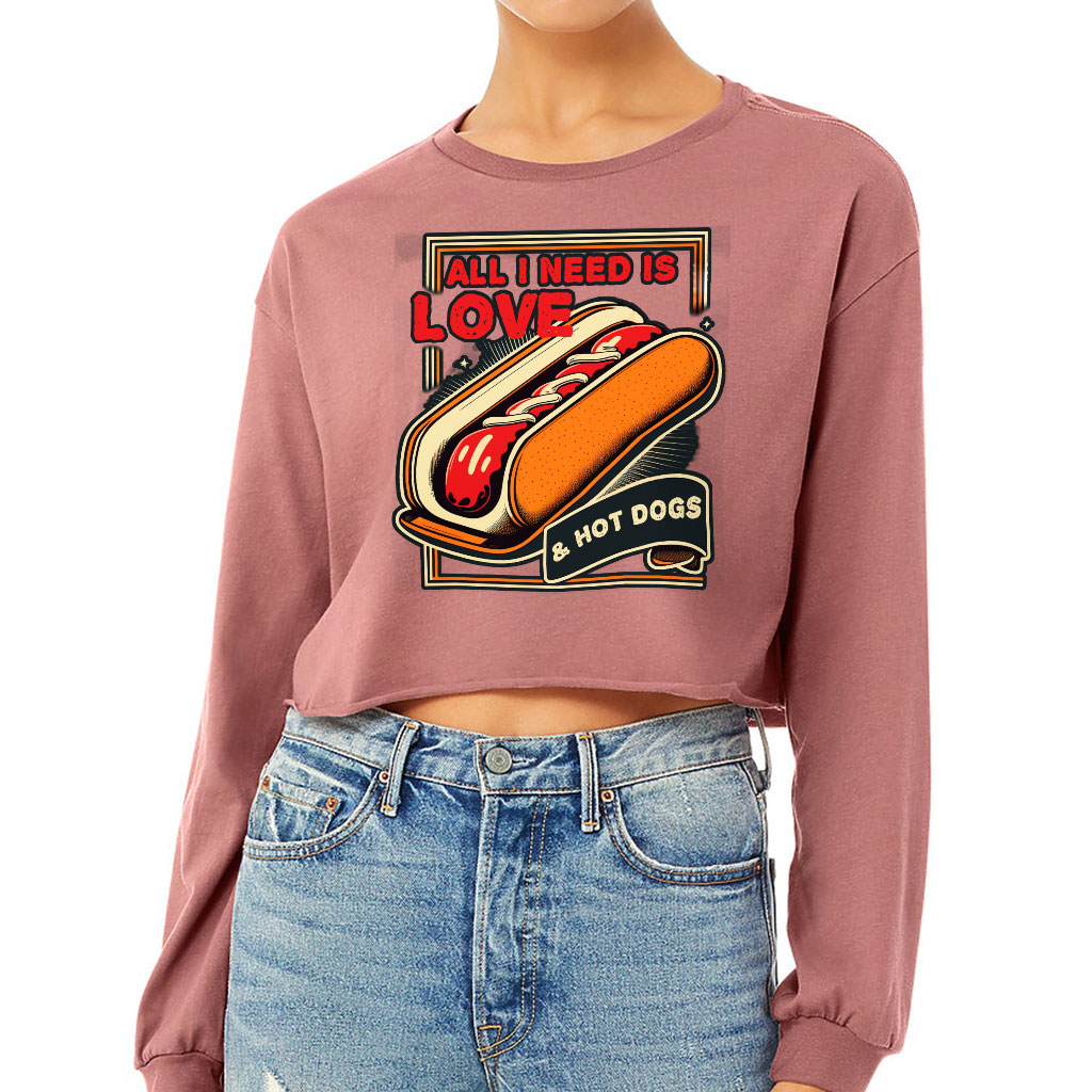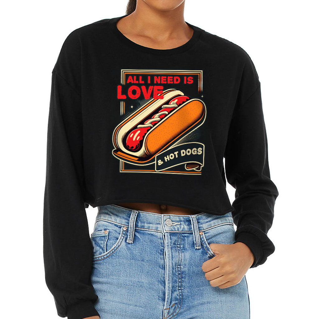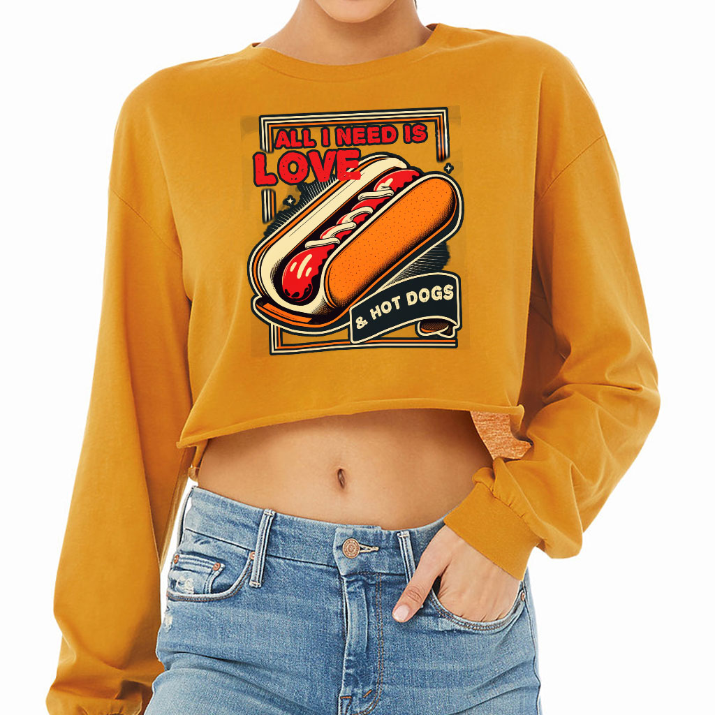 I Love Hot Dogs Cropped Long Sleeve T-Shirt