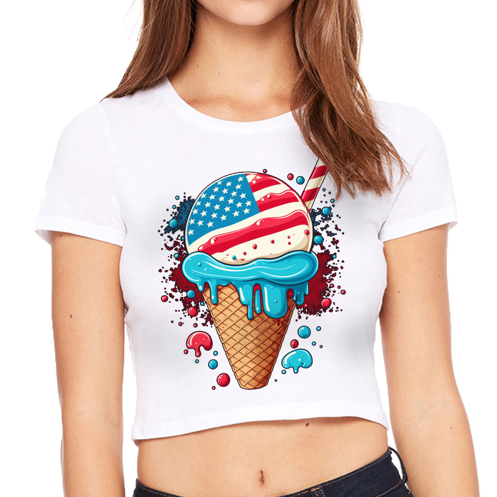 Ice Cream Flag Women’s Cropped T-Shirt is no ordinary piece of clothing. Its form-fitting silhouette and soft fit and feel provide a retail fit for clothing that’s true to size.