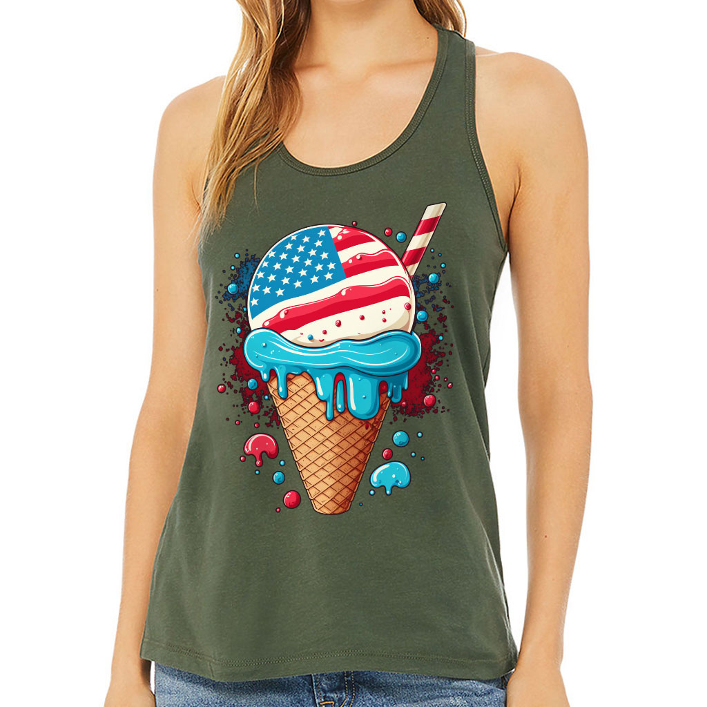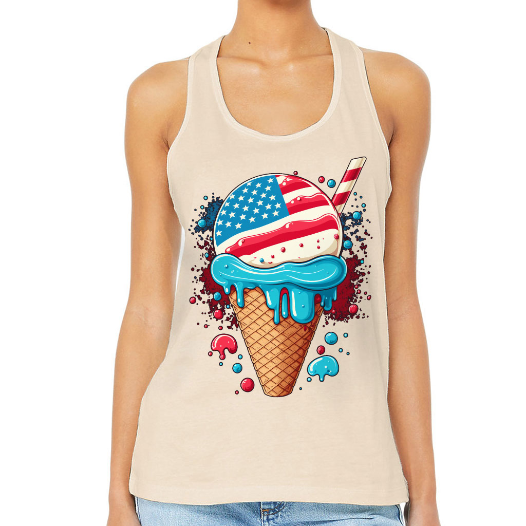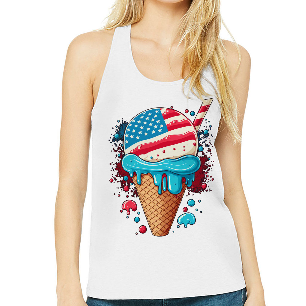 Ice Cream Flag Women’s Racerback Tank features a flattering racerback, relaxed fit. Wearing our ideal racerback tank, women will feel the ultra-softness of cotton. This product never disappoints if you want a piece of clothing to feel cool and comfortable at the same time.