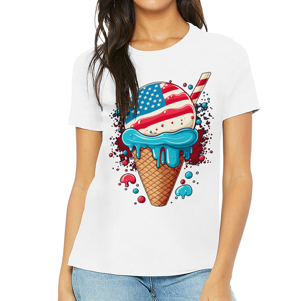 Ice Cream Flag Women’s T-Shirt – Patriotic T-Shirt – Cool Design Relaxed Tee