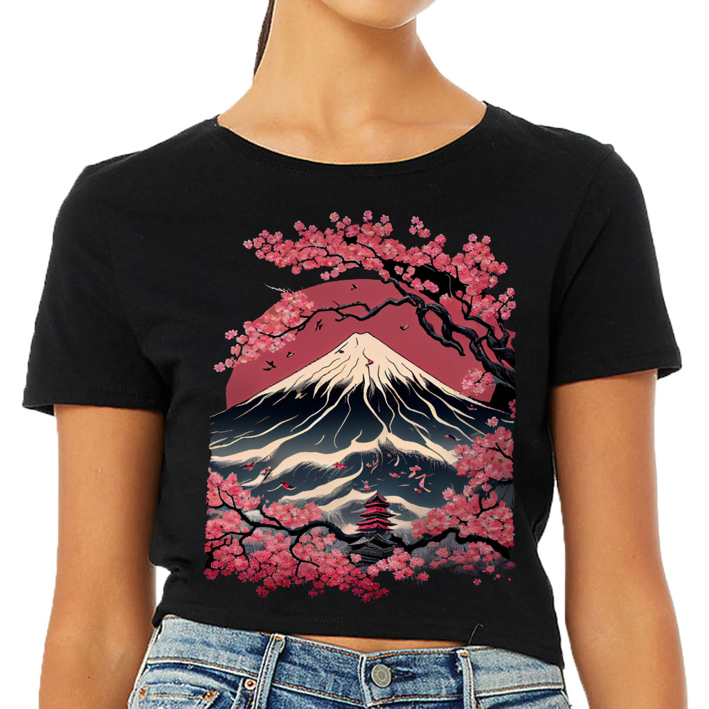 Japan Art Women’s Cropped T-Shirt – Blossom Crop Top – Landscape Cropped Tee