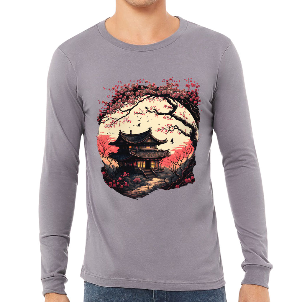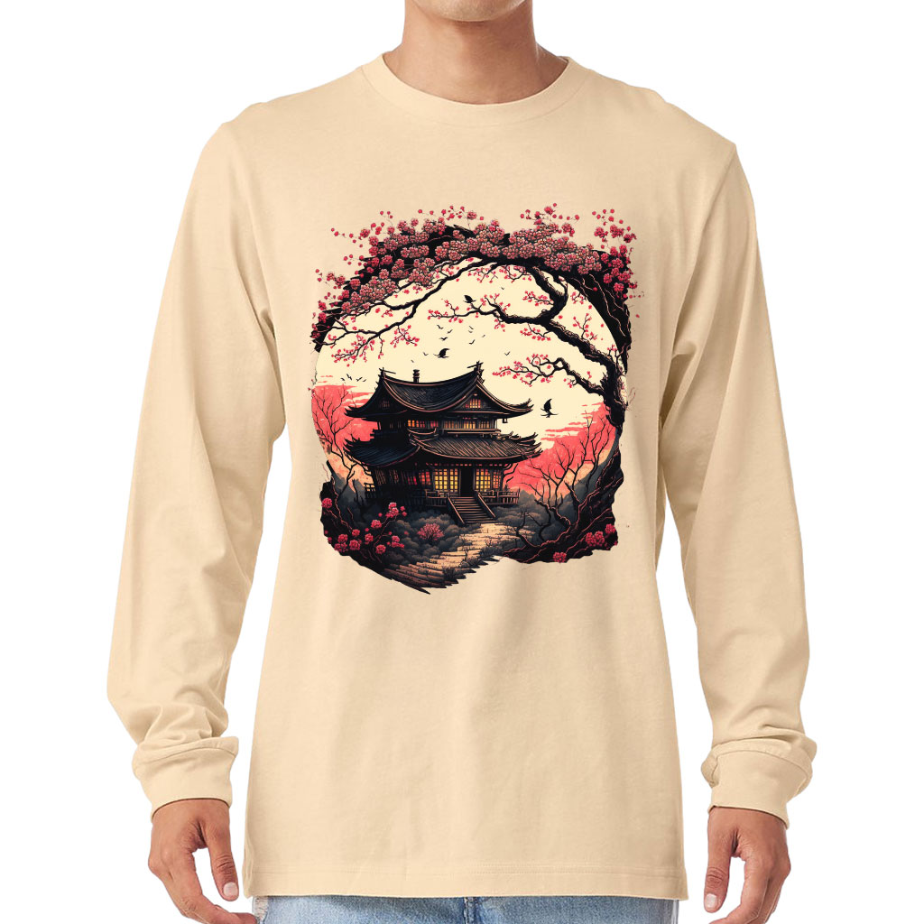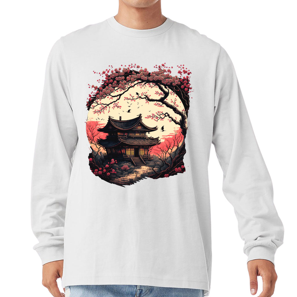 Japanese Art Long Sleeve T-Shirt is proudly made with 7x less water than average manufacturers, in recycle-friendly facilities that also guarantee zero sweatshop conditions. Blossom is designed and printed in California.