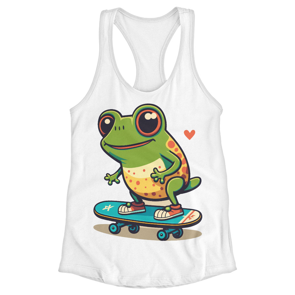 Kawaii Frog Racerback Tank – Skateboard Tank – Cute Workout Tank