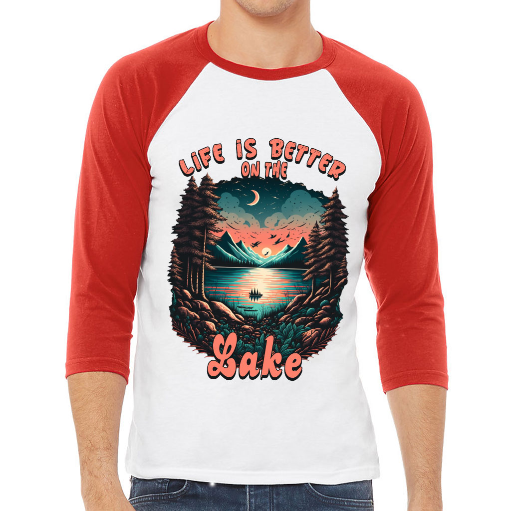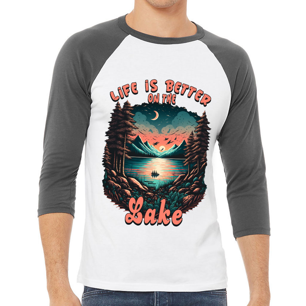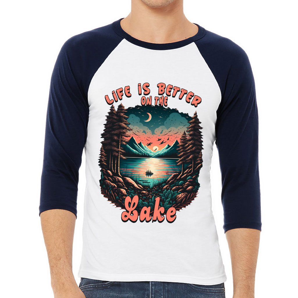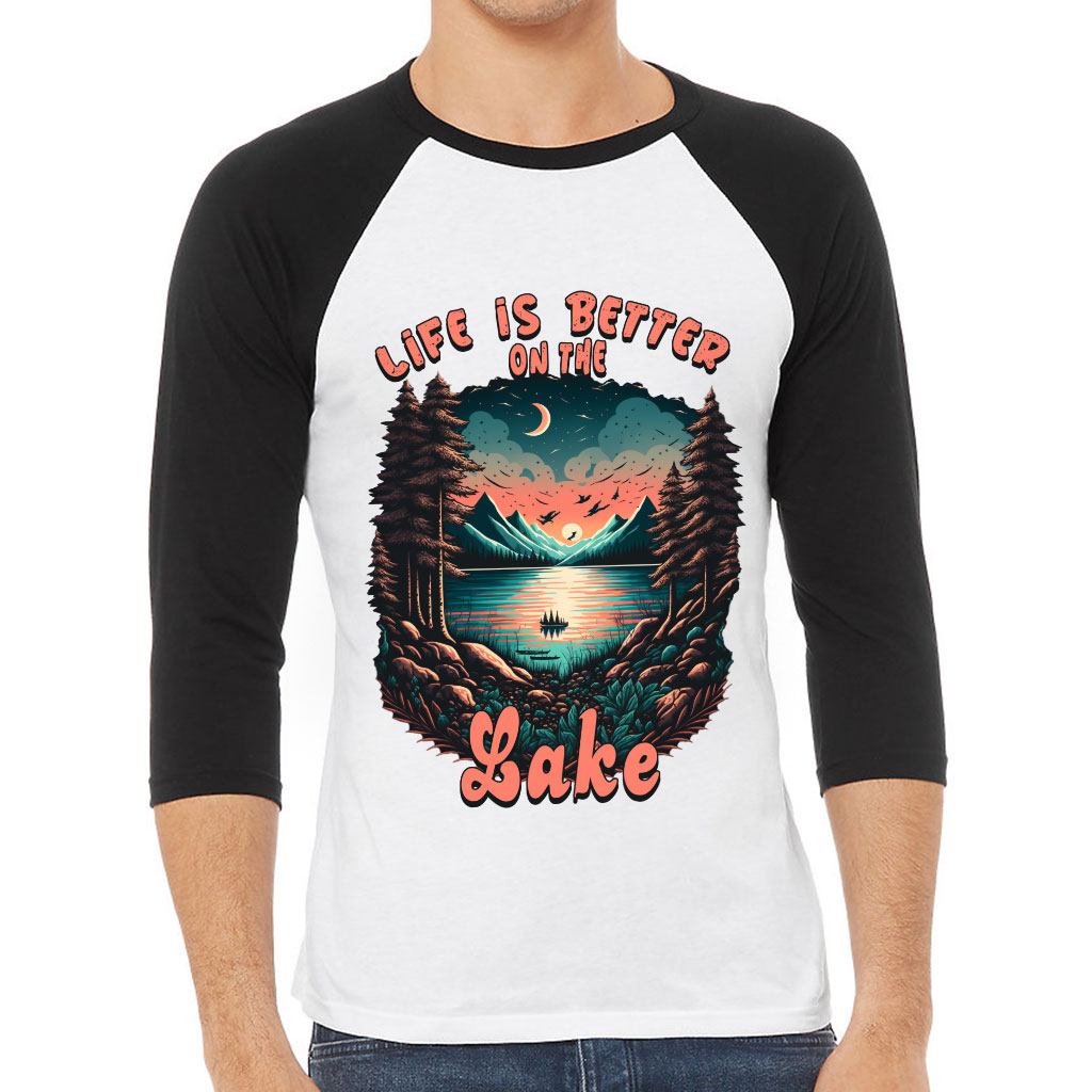 Life is Better at the Lake Baseball T-Shirt – Nature T-Shirt – Landscape Baseball Tee