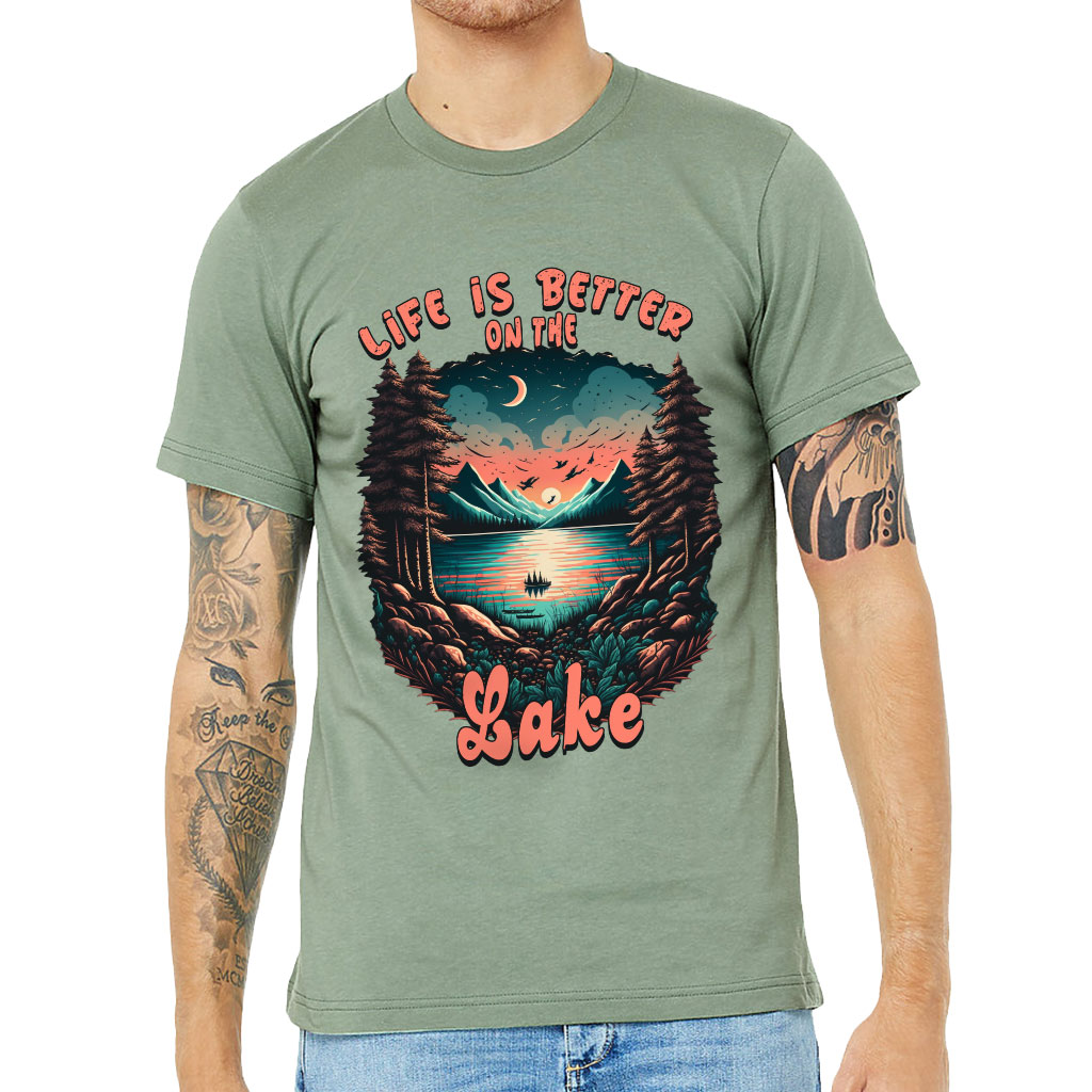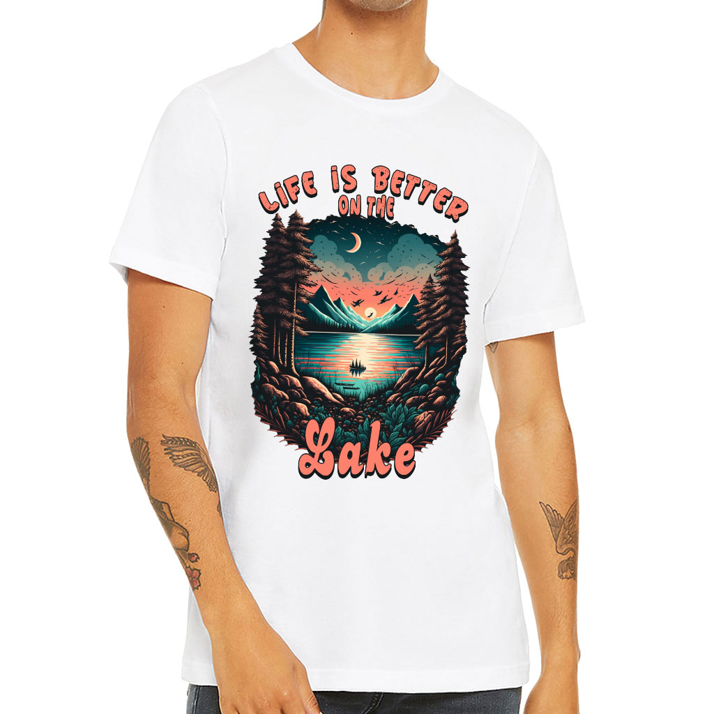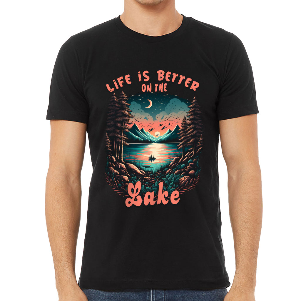 The cotton material feels great against your skin and is very light, feels good on the body, and has good air permeability. The material of Life is Better at the Lake Short Sleeve T-Shirt makes you feel soft and comfortable. No fading, no pilling!