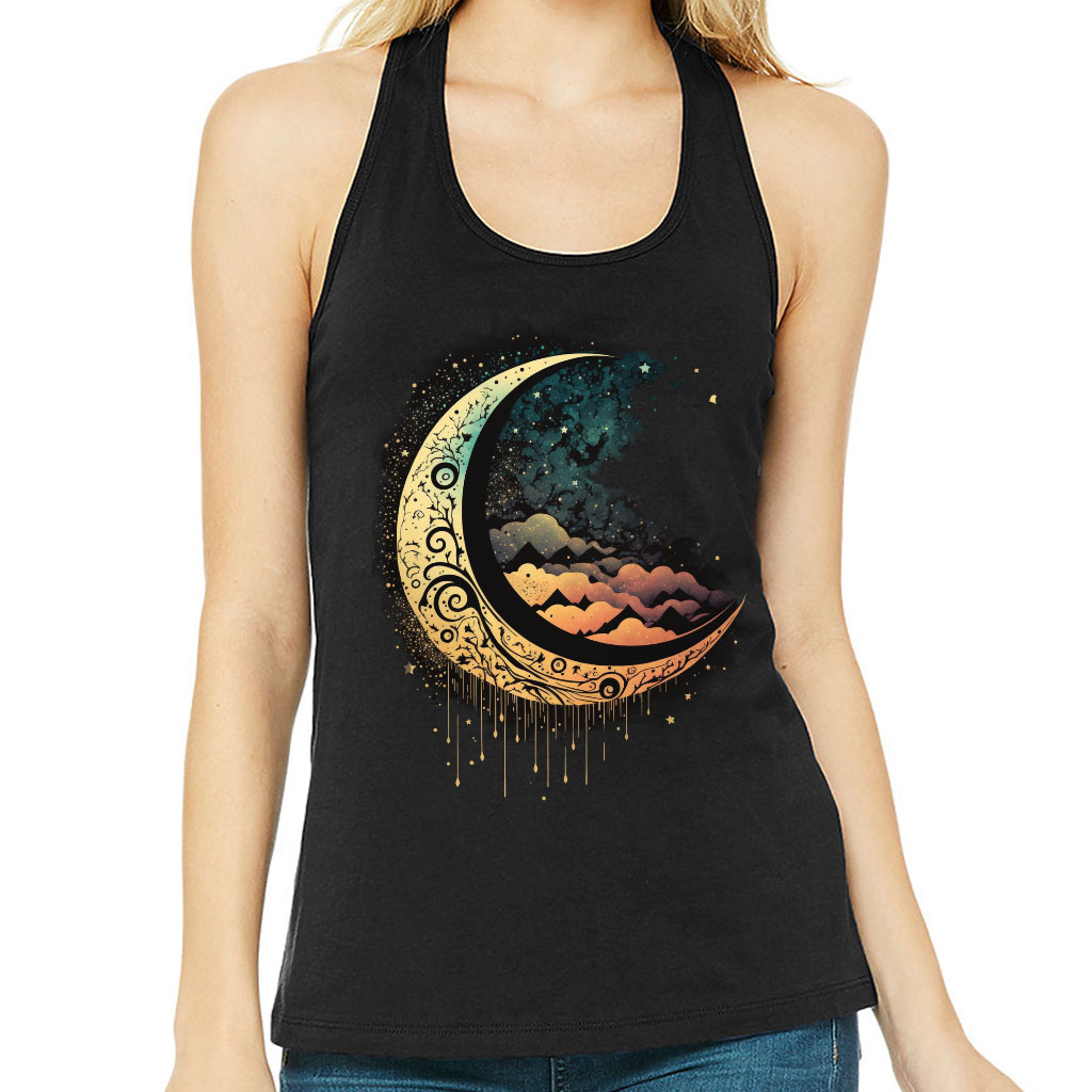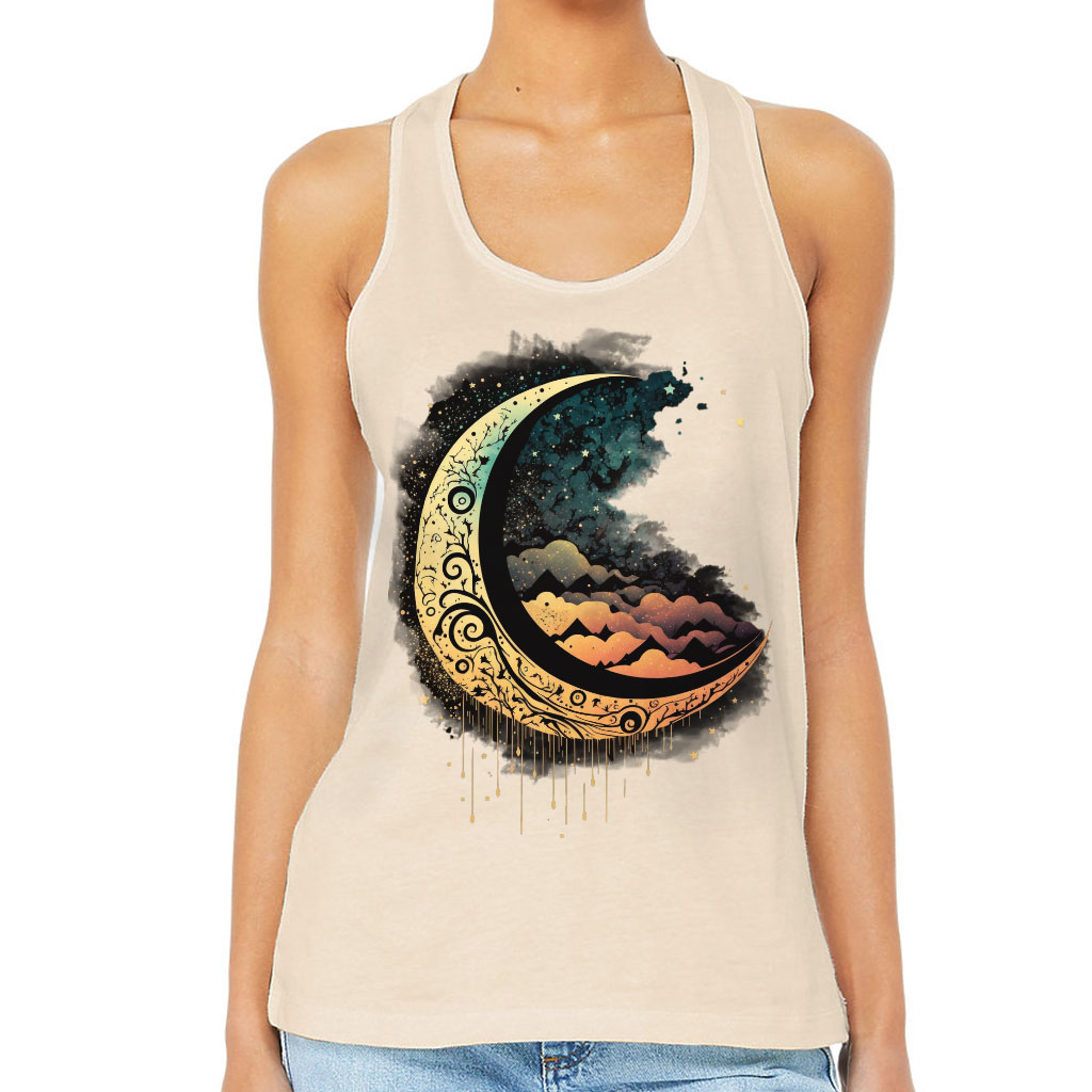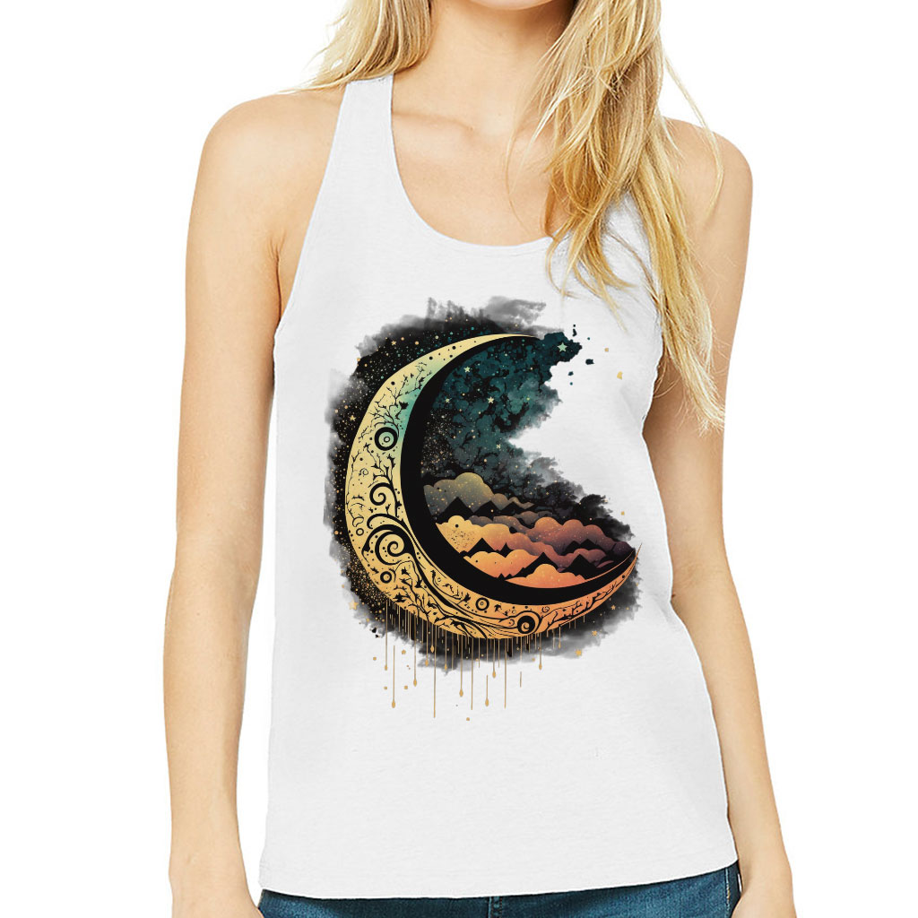 Moon Graphic Women’s Racerback Tank features a flattering racerback, relaxed fit. Wearing our ideal racerback tank, women will feel the ultra-softness of cotton. This product never disappoints if you want a piece of clothing to feel cool and comfortable at the same time.