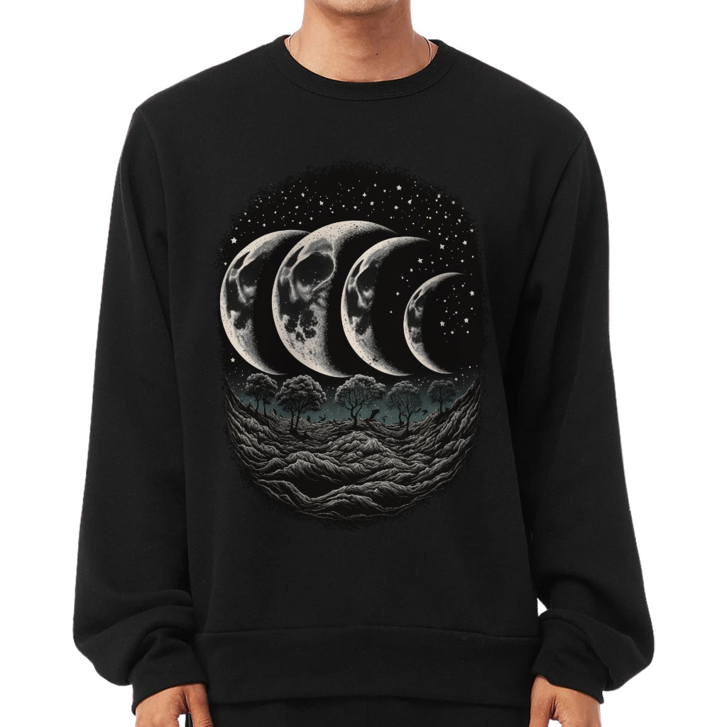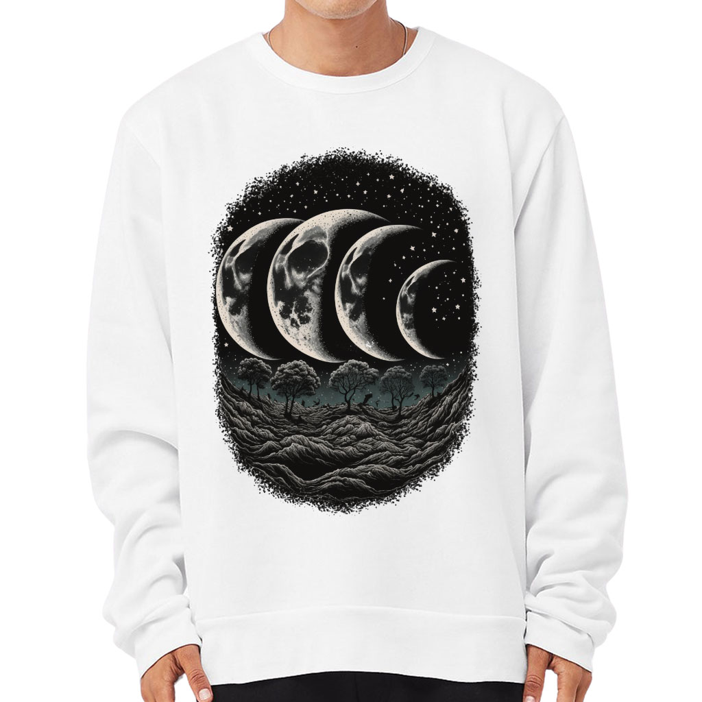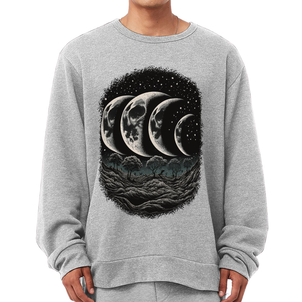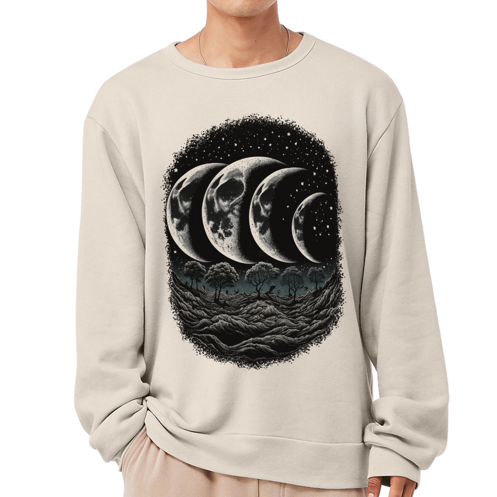 Moon Phase Sponge Fleece Sweatshirt – Landscape Classic Sweatshirt – Printed Sweatshirt