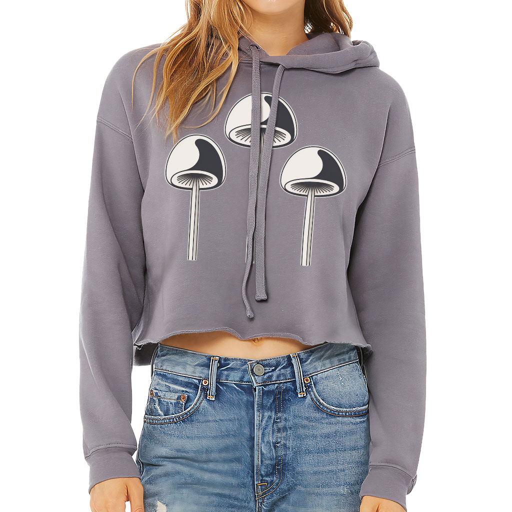 Mushroom Design Women’s Cropped Hoodie is proudly made with 7x less water than average manufacturers, in recycle-friendly facilities that also guarantee zero sweatshop conditions. Graphic is designed and printed in California.