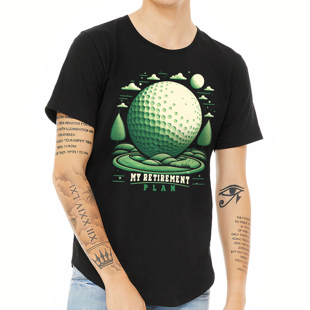 My Retirement Plan Curved Hem T-Shirt is no ordinary piece of clothing. Its 3/8 neck binding, subtle