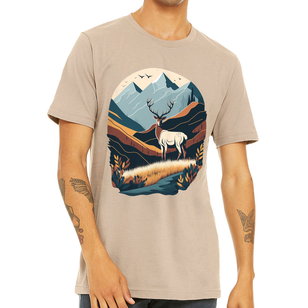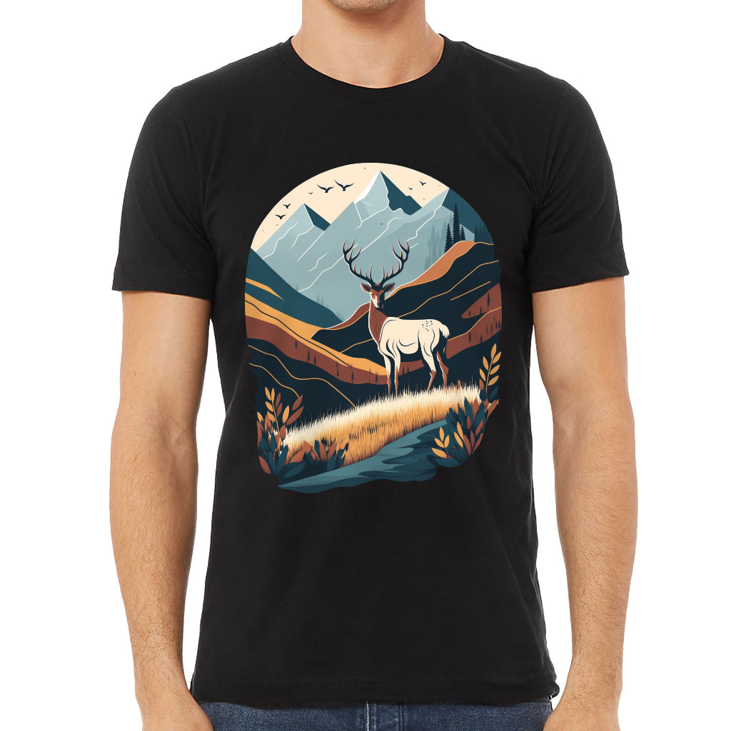 Nature Print Short Sleeve T-Shirt – Deer T-Shirt – Landscape Short Sleeve Tee