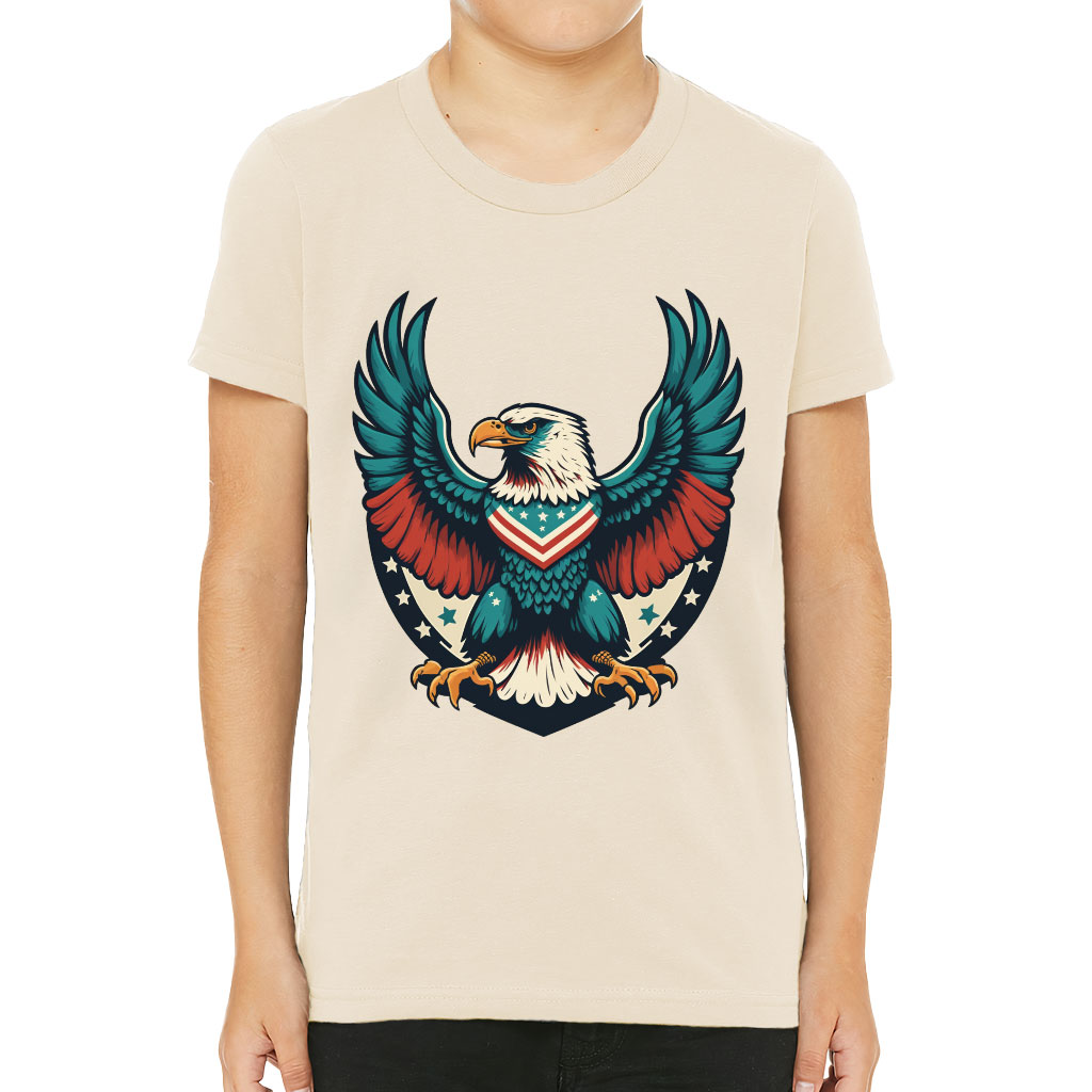 Patriotic Eagle Kids’ T-Shirt is no ordinary piece of clothing. Its crew neck and short